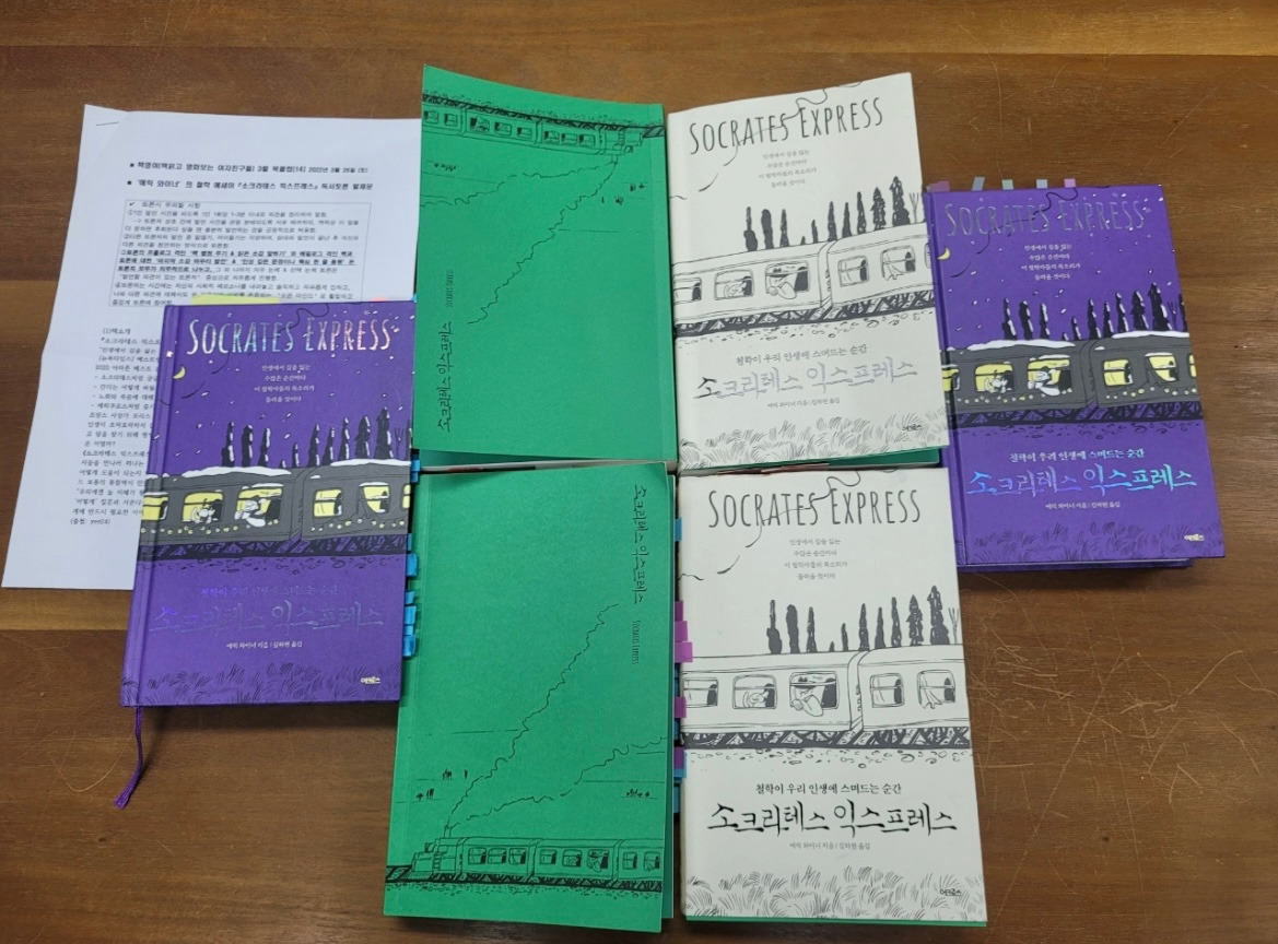 처음에 ‘소크라테스 익스프레스’의 존재감을 발견한 것은 김영하 북클럽 선정도서 목록에서였다. 이후로 지역도서관 북클럽을 진행하고 계시는 작가님으로부터 이 책의 추천을 받게 되면서 해를 거듭하며 베스트셀러의 반열에 올라 지속적으로 핫한 책이라는 것을 재확인했다. 이래저래 유명세를 타고 있는 이 책에 대한 호기심이 생겼고, 좀 자세하게 읽어보고 면밀히 분석해볼 기회를 갖고 싶어져서 우리 책모임의 3월 ‘함께읽기책’으로 추천하여 ‘3월 북토크’를 진행하게 되었다.