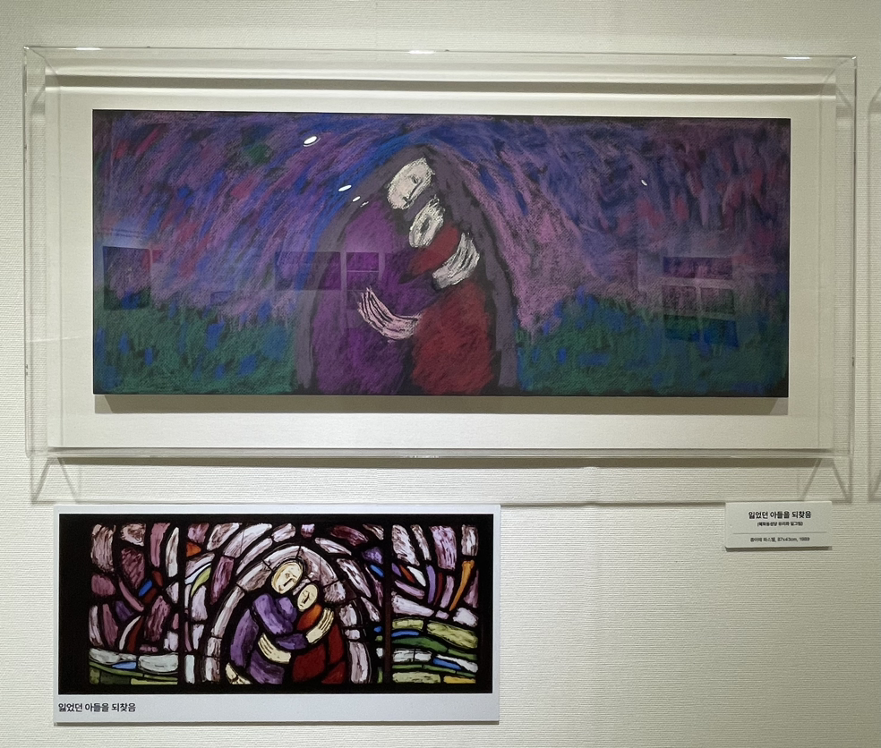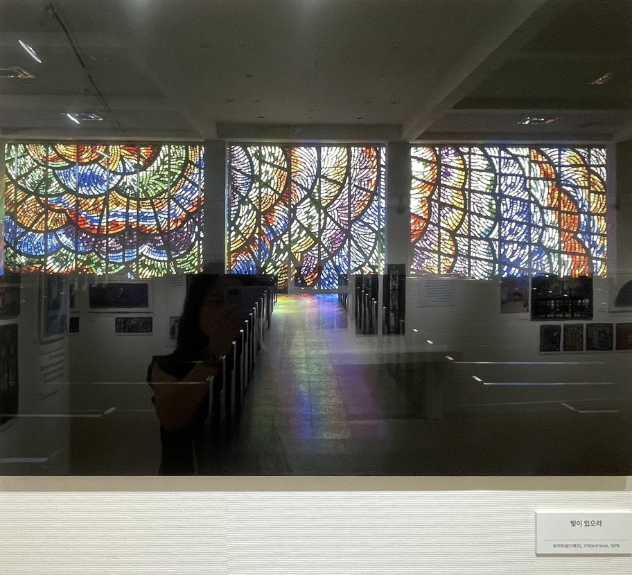 저는 지금껏 성당에서 신비롭고 화사한 스테인드 글라스를 보며 아름답고 황홀하다는 생각만 했을 뿐 유리화 작업과정에 대해서 전혀 몰랐었는데, 이 전시를 통해 유리화 작품의 작업과정이 참 까다롭고 어렵기도 하고 완성하는데 얼마나 많은 에너지와 공이 들어가는지를 새롭게 알게 되었습니다. 게다가 유리화 작업이 체력적으로도 매우 소진되고 그 과정이 녹록지 않다는 것 또한 잘 알 수 있었습니다.