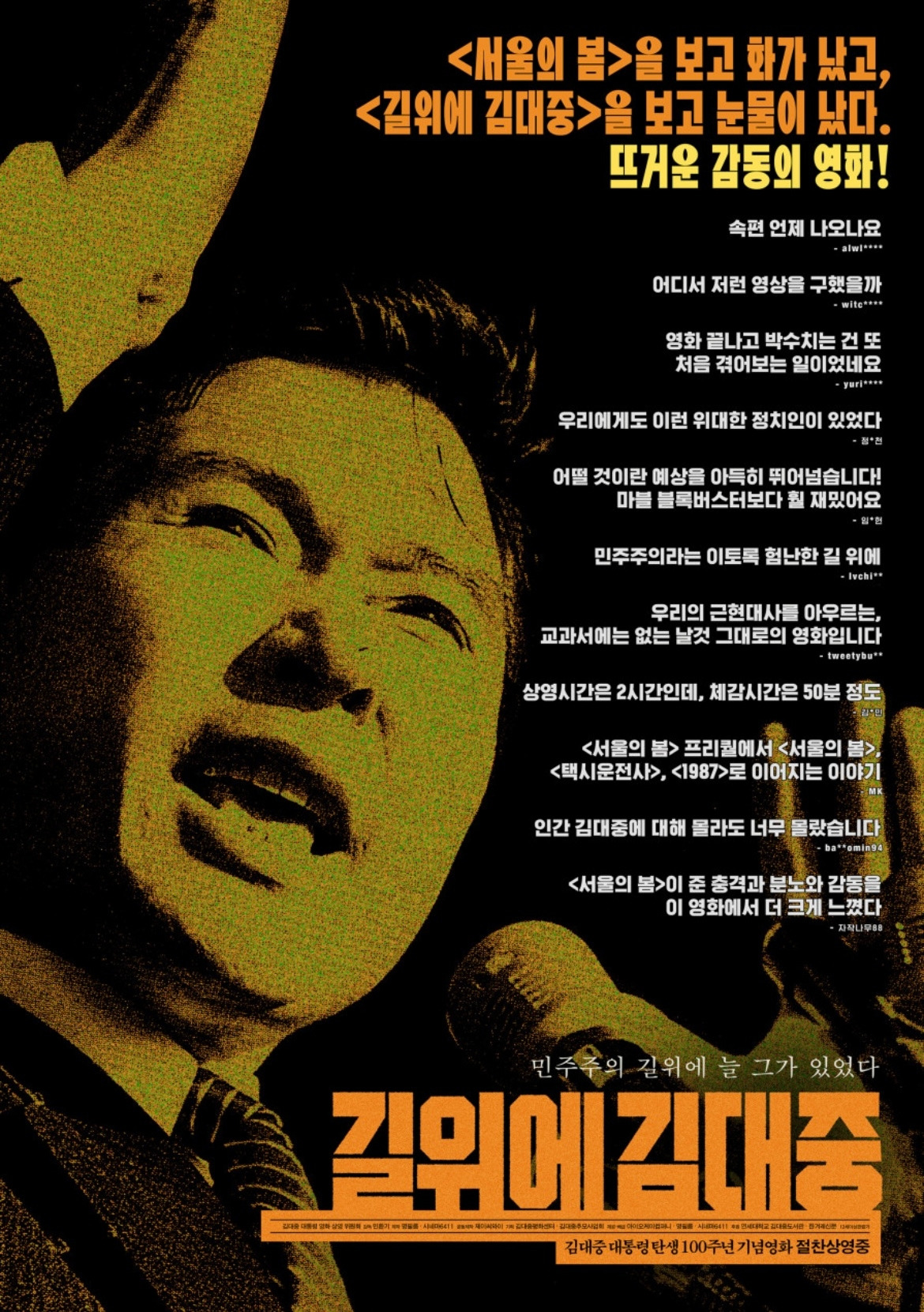다큐 영화 <길위에 김대중> 역시 어느날 불현듯 라디오 전파를 타고 나의 귀에 꽂히게 되었다. 이 영화에 대한 사심 가득함을 숨길 수 없다는 듯한 신장식 변호사의 호의 어린 뉘앙스로 전달되어 더욱더 선명하게 인식된 영화정보에 의해 내 마음에 뚜렷하게 각인된 영화였다.