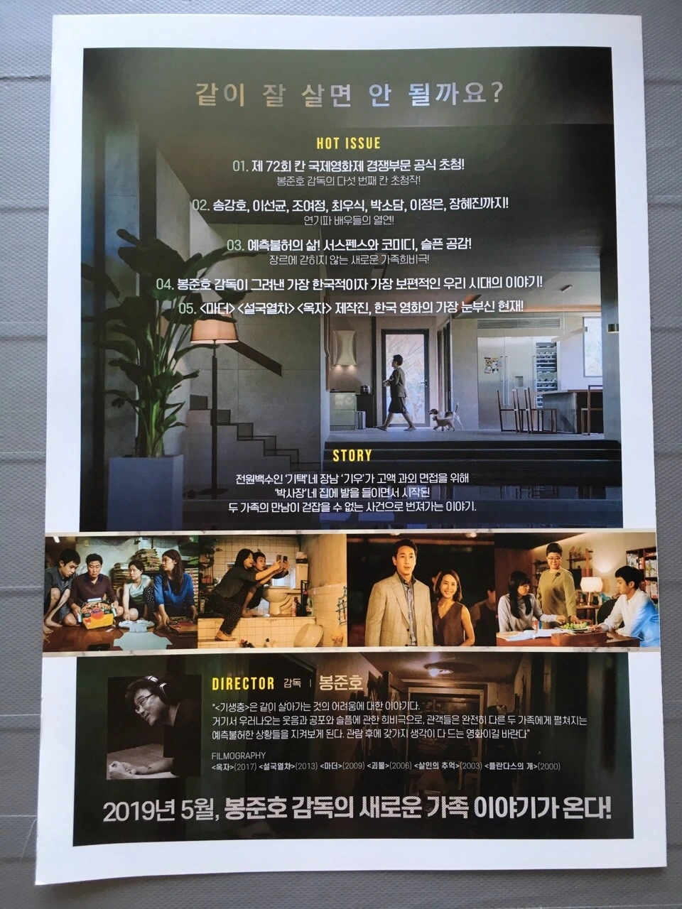 ✔주연 - 송강호, 이선균, 조여정, 최우식, 박소담, 이정은, 장혜진, 박명훈, 박서준