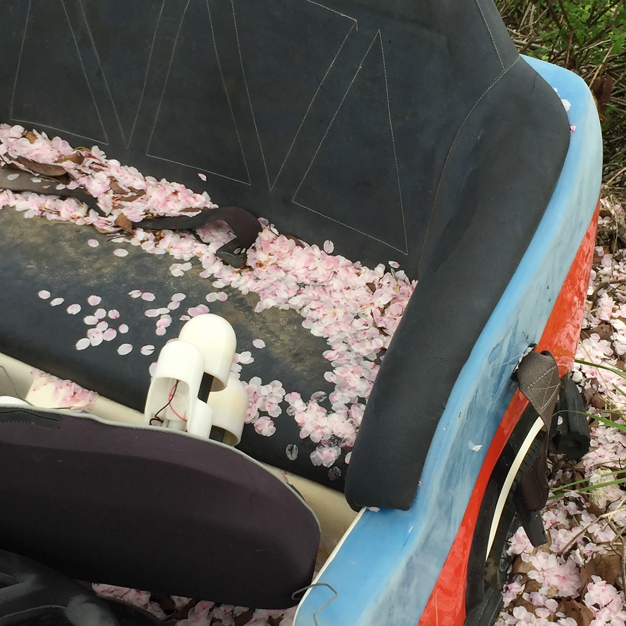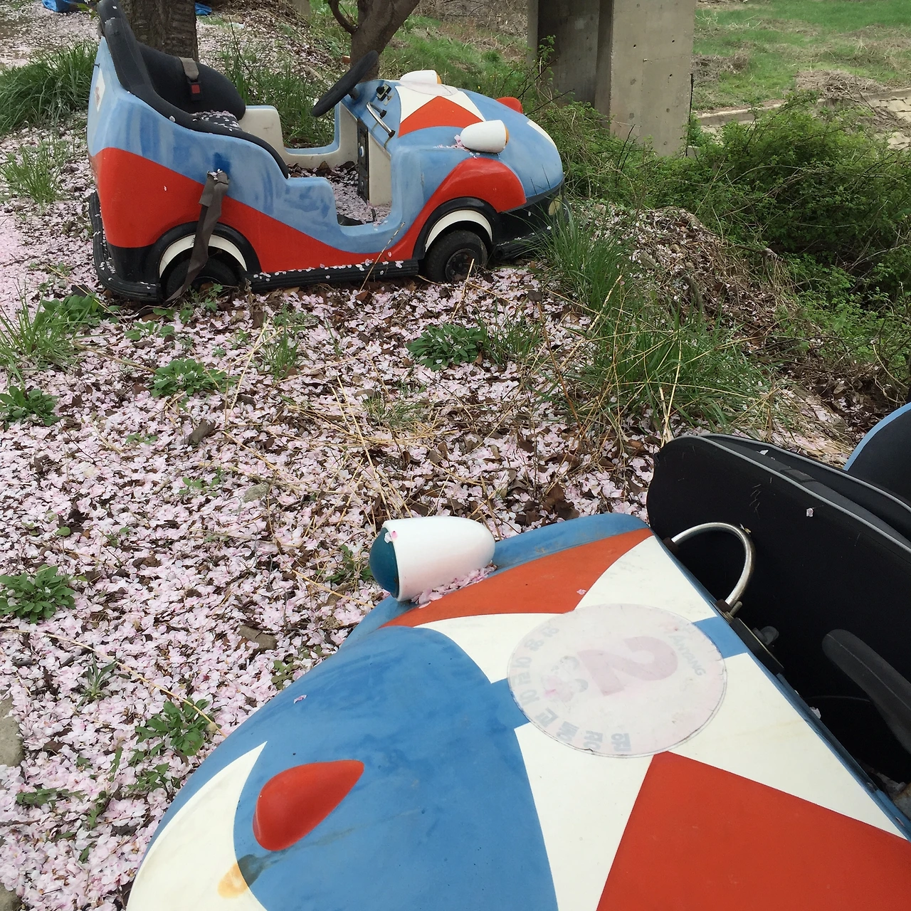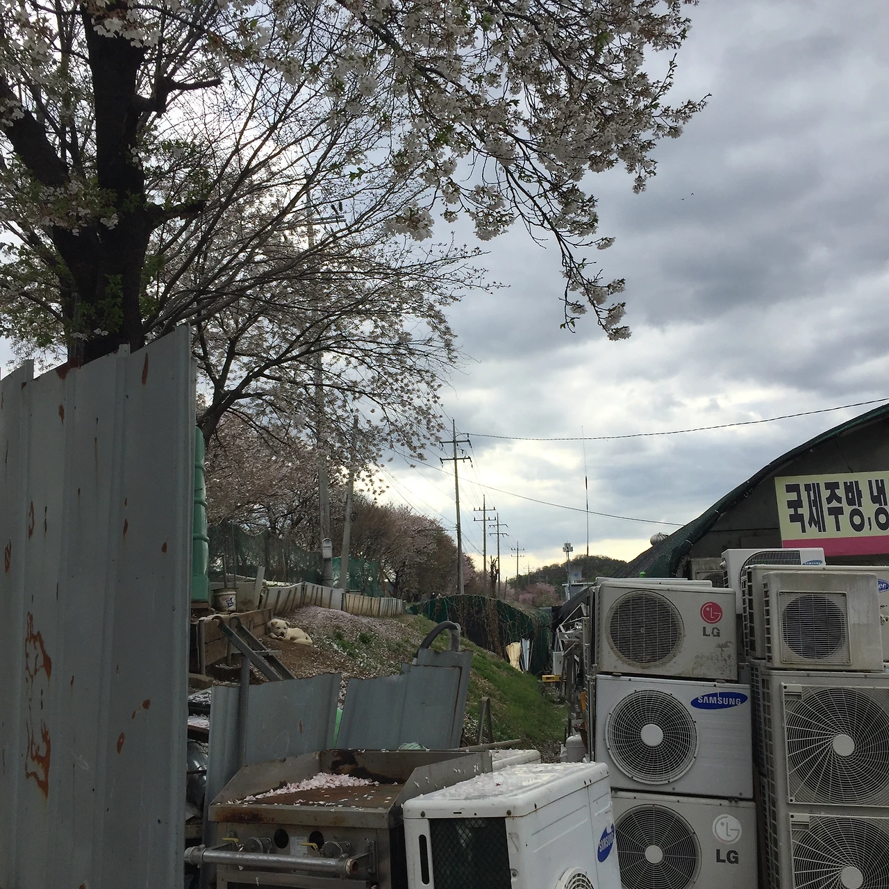 어쩐지 그 모습이 기억나 평소 잘 가지 않는 천변 반대 길로 건너갔다. 길을 따라 걷는 길엔 소외된 것들이 많았다. 유리가 깨진 폐공장 건물, 산화돼 곳곳이 벗겨진 중장비, 덩굴에 덮인 비닐하우스, 먼지 쌓인 손수레, 교통안전공원의 어린이 자동차까지. 이 길엔 사람들이 많지 않았다. 하지만 이곳에도 벚꽃나무들은 듬성듬성 있었고 벚꽃잎이 떨어져 소외된 것들과 그 주변에 함께하고 있었다. 그것들을 사진에 담아봤다. 쓸쓸함이나 처연함이 느껴지기도 했으나 그것은 나만의 감상일 뿐, 고물 어린이 자동차에게 물어보지 않았으니 진짜 속내를 알 턱이 없었다.