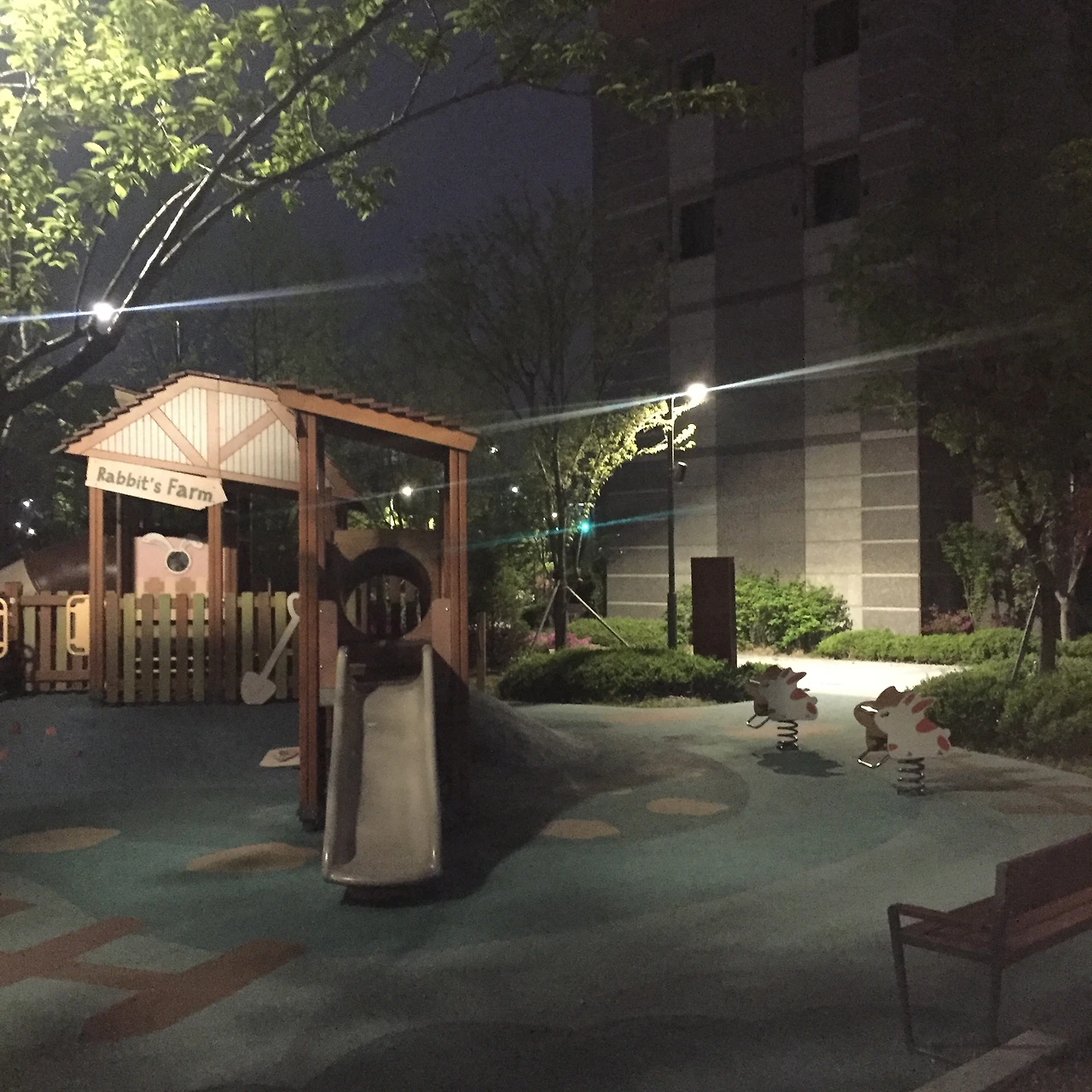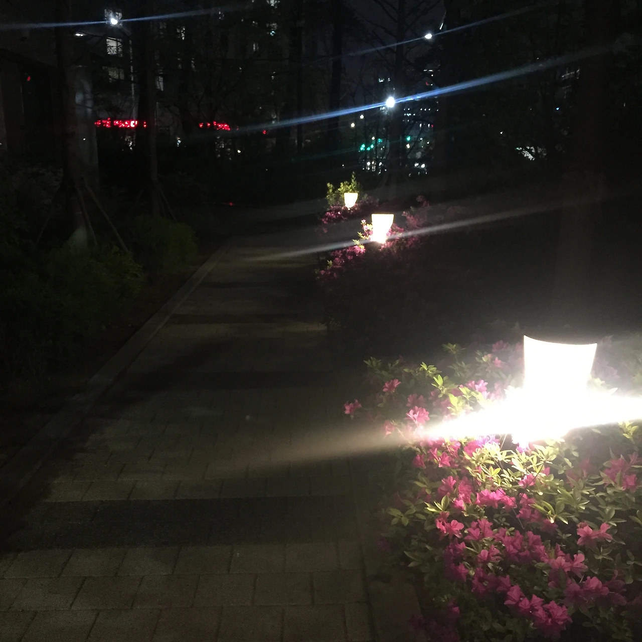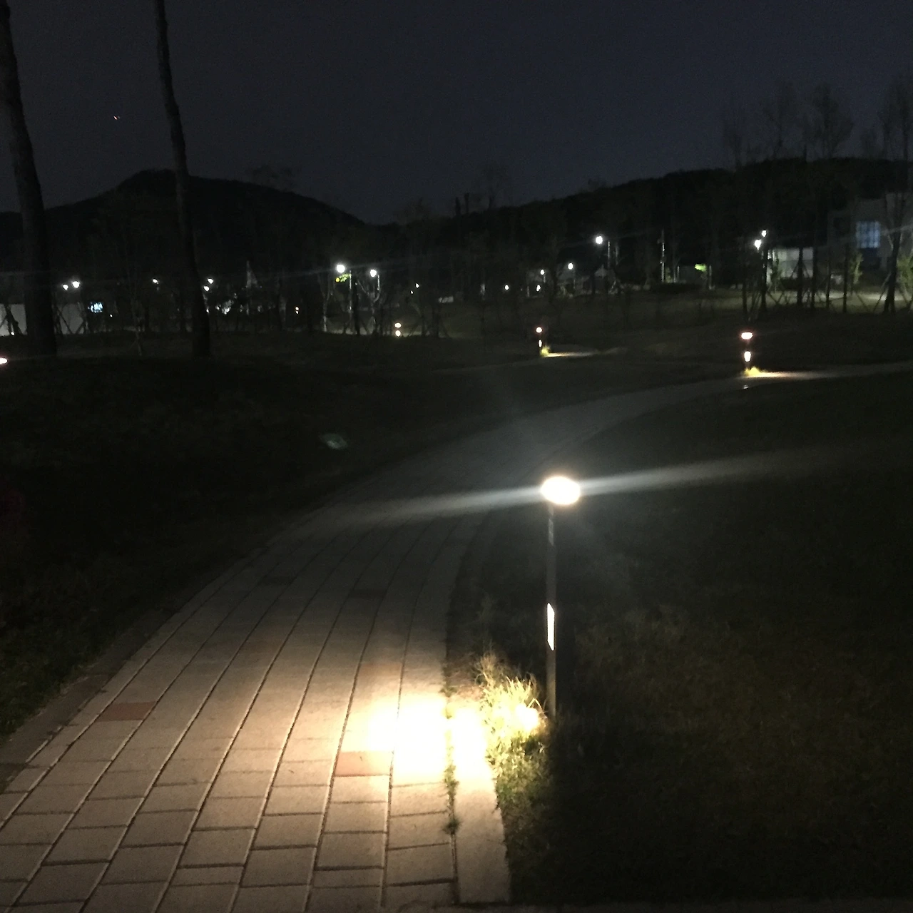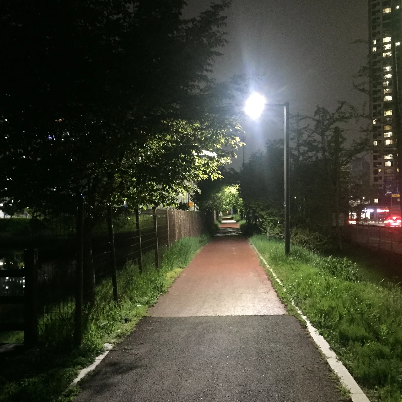2주 만에 보는 동네 밤길은 별것도 아닌데 이유 없이 사진 찍게 되는 묘한 매력이 있다. 특히 높이 있는 가로등이나 철쭉 사이를 비추는 낮은 거리등이 예쁘다. 주황끼 있는 백색광이 좋다.