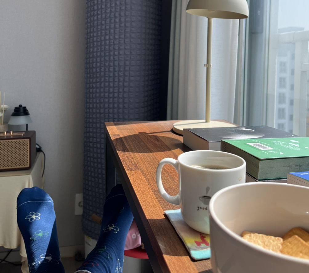 더이상시간을팔아돈을구걸하지않게되었다황금의시대를보내는중이다햇빛이드리워서따뜻한게좋고따듯한커피와좋이하는과자가담겨져있어좋다읽을책이산더미이지만안읽거나읽거나자유롭다생산적인일을궁리히다이내내려놓는다굳이뭘더이상해서뭘어쩌자고오늘해가좋으니그걸로만족하고윤상의라듸오에귀를기울이련다