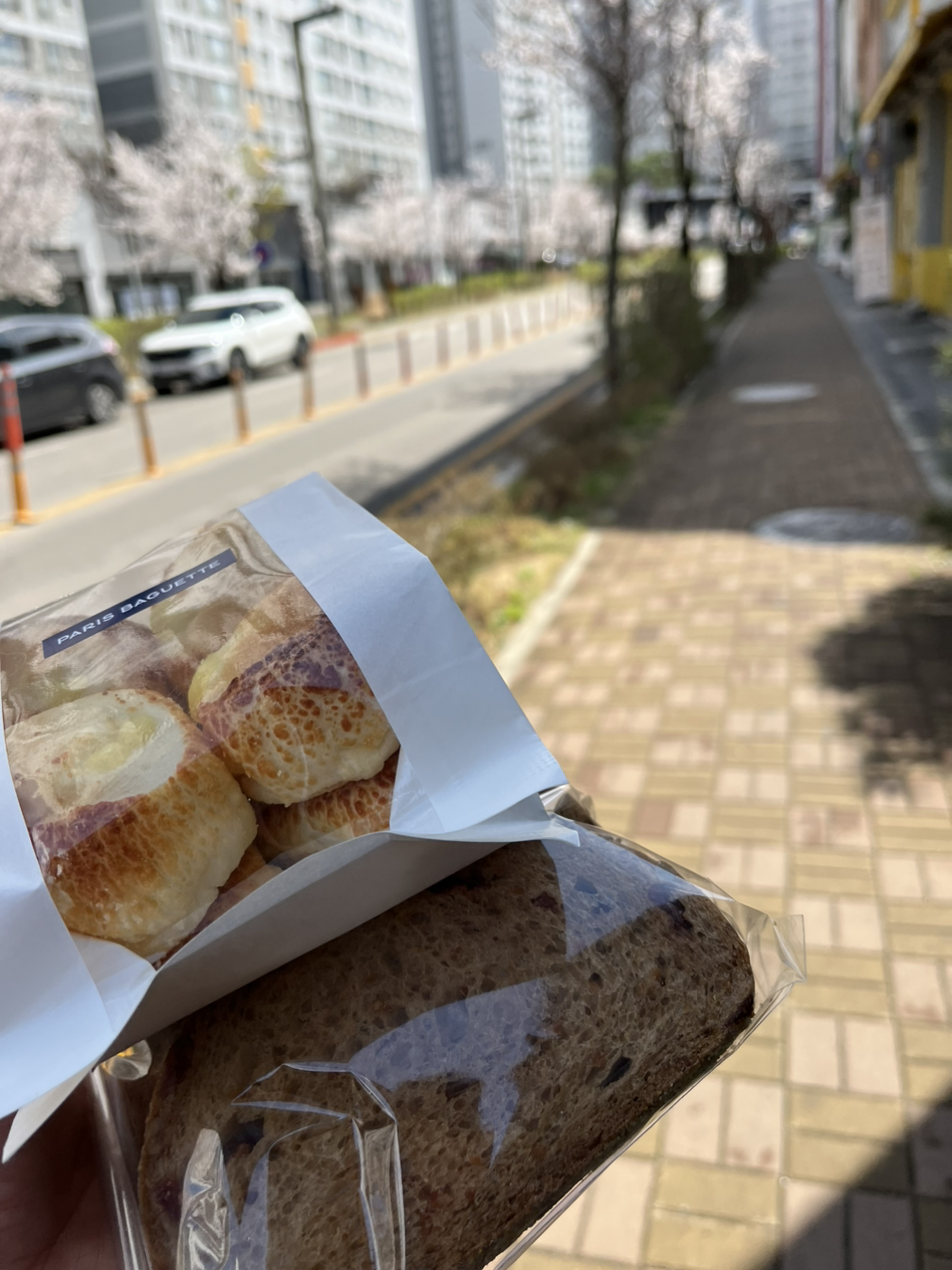 현대카드 M포인트를 70프로 사용해 치즈빵과 깜빠뉴를 삼천 원에 샀다. 벚꽃도 좋지만 역시 토요일의 오전에는 빵과 커피가 진리.