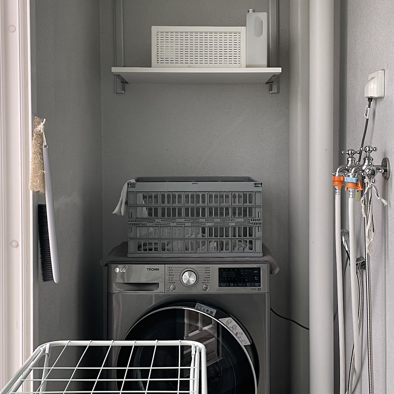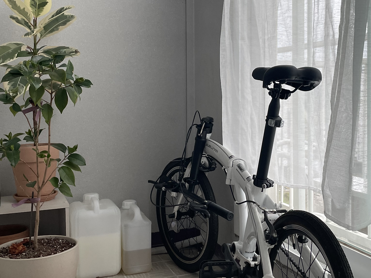 아파트 베란다는 잠재적 쓰레기통이 될 수 있다. 깨끗하게 사용하지 않는다면 말이다. 주로 사용하는 공간이 아니기에 신경 쓰지 않으면 창고 겸 물건을 잔뜩 쌓아 두는 곳이 되고 특히 평수가 작다면 물건을 복잡하게 쌓아놓을 가능성이 높다. 나의 공간 그 어떤 곳이라도 그럴 테지만 베란다에는 특히 물건을 쌓아놓고 싶지 않았다. 나는 애초에 이사 온 순간부터 세탁기와 세제, 화분을 제외하고 다른 물건을 두지 않았다. 공간이 많이 남는 신발장을 활용해 물건을 정리했고 잘 관리하며 사용하기 위해 접이식 자전거를 넣은 것 외에는 더 이상의 물건을 두지 않았다.
