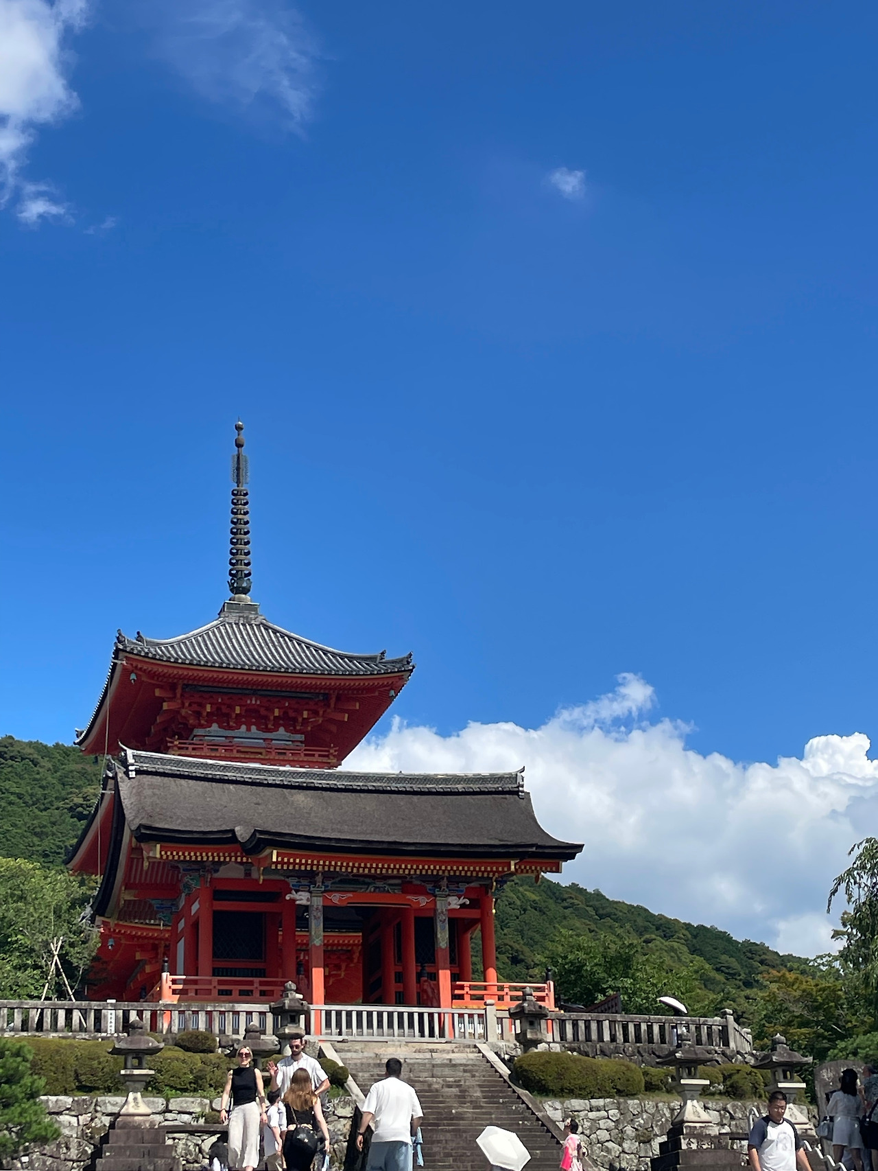 점심식사와 후식을 먹은 후 바로 기요미즈데라로 이동! 이동 경로 강행군. 하하하. 기요미즈데라에서는 입장권을 구매하진 않았고(더위와 체력 이슈) 밖에서 구경하고 상점가를 돌아다녔다. 기요미즈데라도 그렇고 주변에 보이는 절도 그렇고 일본의 절의 건축 색채는 다소 단순하다는 인상을 받았는데, 어떤 곳은 단순함을 넘어서 무섭다는 인상을 받기도 했다. 해풍 때문에 색이 쉽고 빠르게 닳기 때문에 단순화했을까? 화려한 중국, 미얀마, 화사하고 단아한 한국 등 다양한 아시아권 나라들의 사찰 양식에 비해 일본은 다소 단순한 느낌.