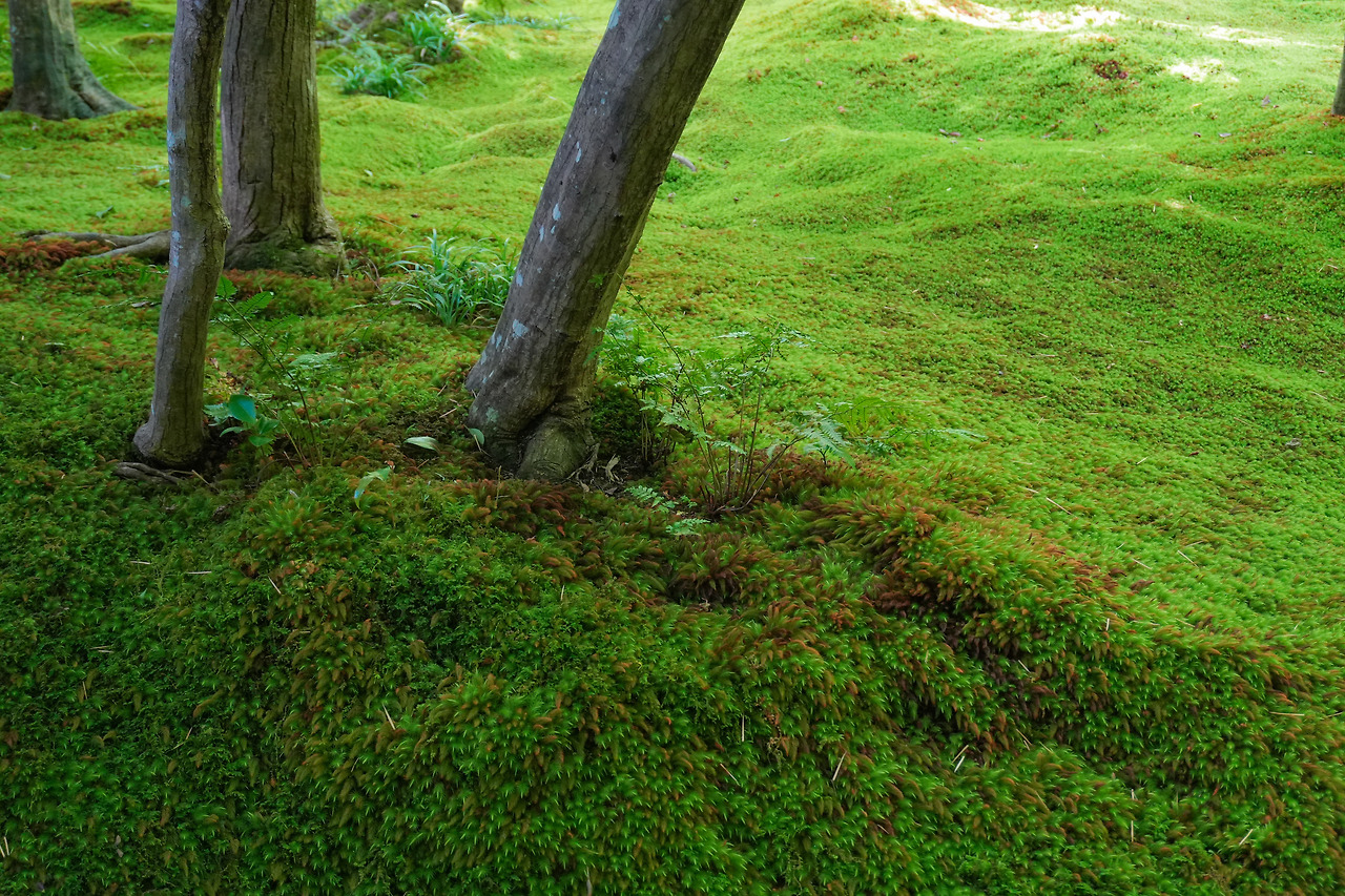 아라시야마 죽림은 관광객이 많음에도 불구하고 넓어서인지 복잡하다는 느낌을 크게 받지 못했다. 아마 평일 여행이라 사람이 좀 덜한 것도 있지 않을까 싶지만. 아무튼 그렇게 시원하고 청량한 죽림을 지나 비구니 승려 자매가 머물렀다는 기오지라는 작은 사찰로 이동했다. 가장 끝쪽에 위치한 이 사찰은 매우 작은 규모이고 이끼 정원을 잘 관리한 신비롭고 평화로운 곳이었다. 사람이 비교적 적게 방문하는 점이 좋고 이끼정원이 매력적이다. 조그만 사찰 안에서 쉴 수도 있는데 그 안에서 보는 바깥 풍경이 참 좋았다.