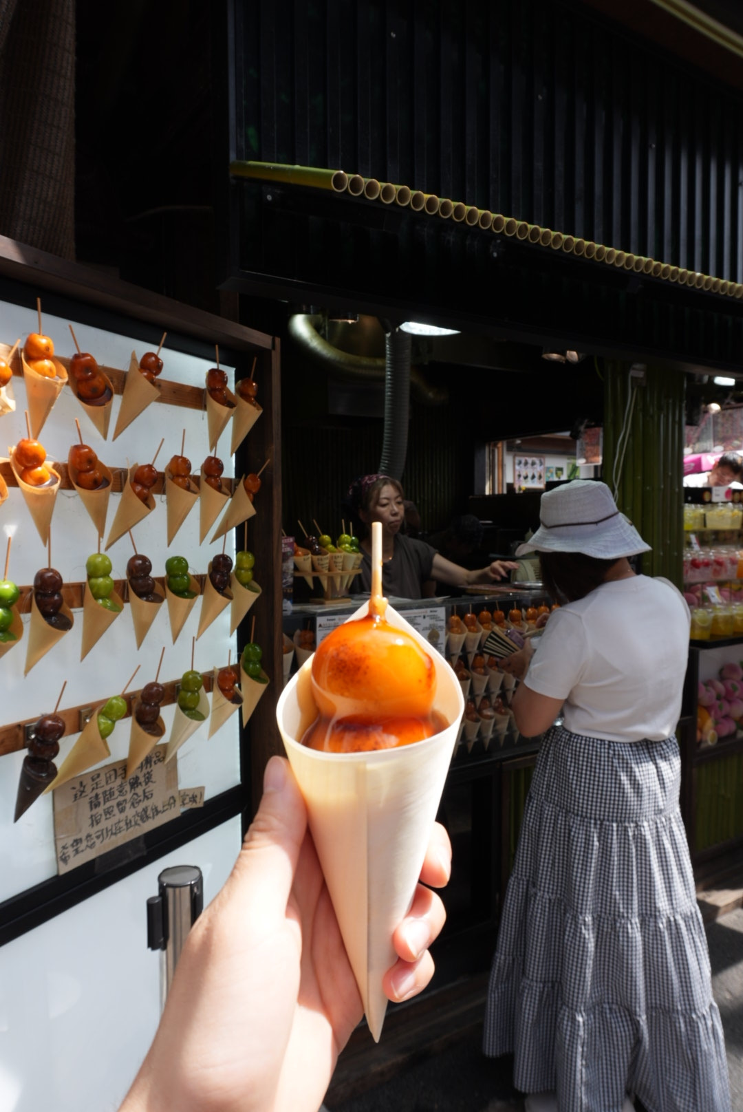 아무튼 아라시야마에 도착한 후 검색해 두었던 '코토이모'가 죽림 입구에 있어 당고 기본맛을 먹어봤다. 동생이 첫맛을 보자마자 눈이 동그래지며 감탄했다. 너무 맛있다고. 서둘러 나도 한 입 먹어봤는데 너무 달고 짜면 어쩌나 걱정했던 것과 달리 간이 아주 적절하고 식감이 너무 부드러워서 단번에 그 맛에 반해버린 우리는 말차 당고도 하나 더 추가 주문해 먹었다. 기본맛이 너무 강렬했는지 말차는 심심한 느낌. 아라시야마에 간다면 '고토이모'에서 기본맛 당고 추천! 그리고 당고는 상점가 골목에서 먹지 말라고 스태프(?)로 보이는 현지인이 설명해 줘서 가게 옆에서 먹고 안으로 들어갔다. 가는 분들은 참고하시길.