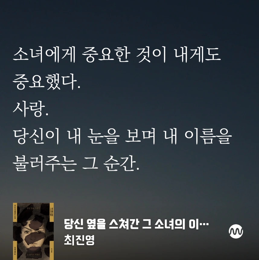 책을 다 읽은 지 한 달 넘게 지났는데도 계속해서 제 마음에 이름 없는 그 소녀가 왔다 갑니다. 구의 증명 속 주인공들은 점점 옅어지는데 이 소설 속 주인공은 점점 짙어져만 갔습니다.