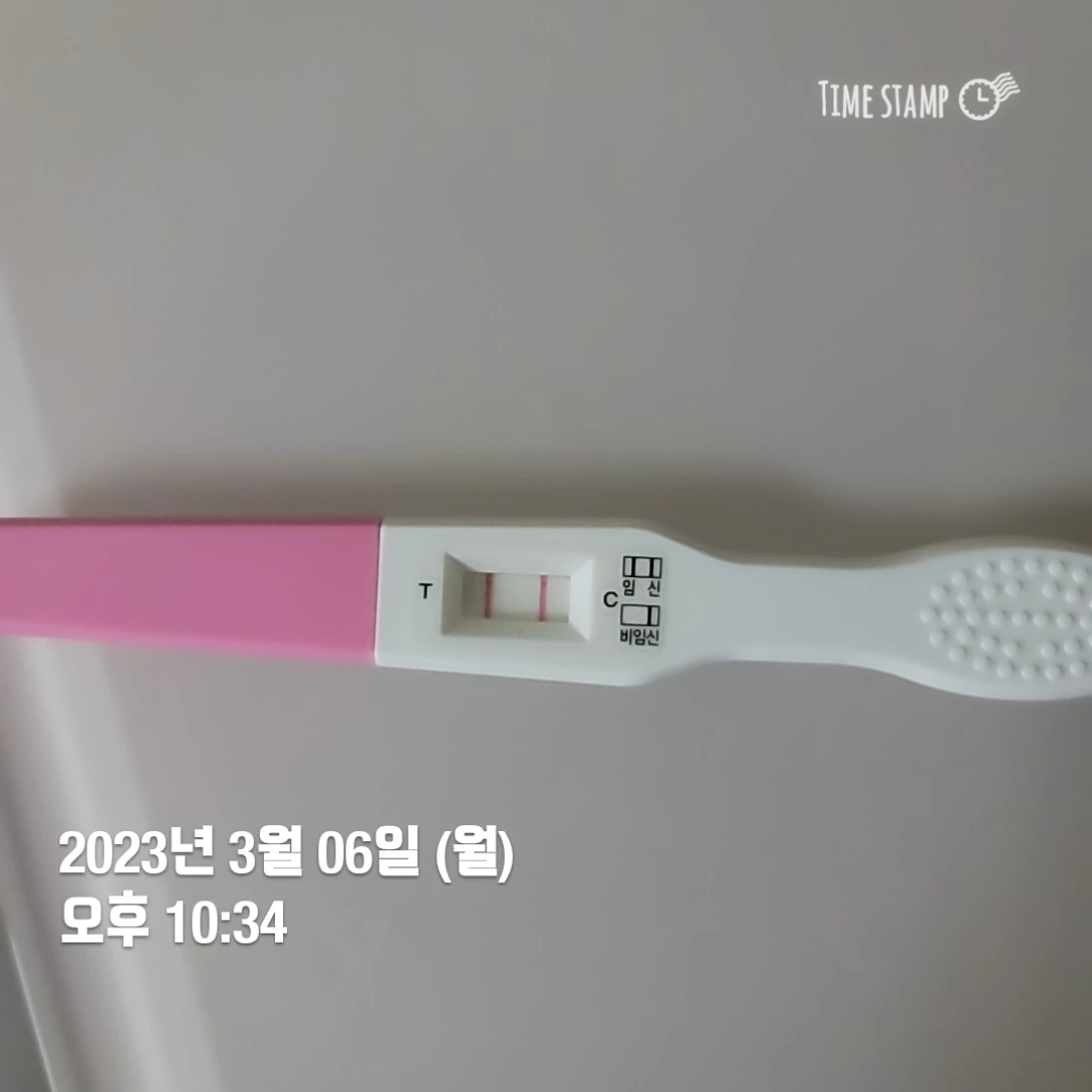 2월, 3월에도 1월 못지않게 스트레스받을 일들 투성이었던지라 그저 월경이 늦어지나 보다 했을 뿐이었다. 그러다 문득 어떤 촉이 발동했는지 자려고 누웠다가 벌떡 일어나서 임신테스트기를 해봤다. 무려 유효기간이 3년이 지난 테스트기였다. (결혼하고는 거의 사용 안 했지만 연애 때도 월경이 좀 늦어지면 임테기를 이용해 종종 확인을 하곤 했다. 희한하게 확인하고 나면 곧바로 월경이 터지곤 했다.)