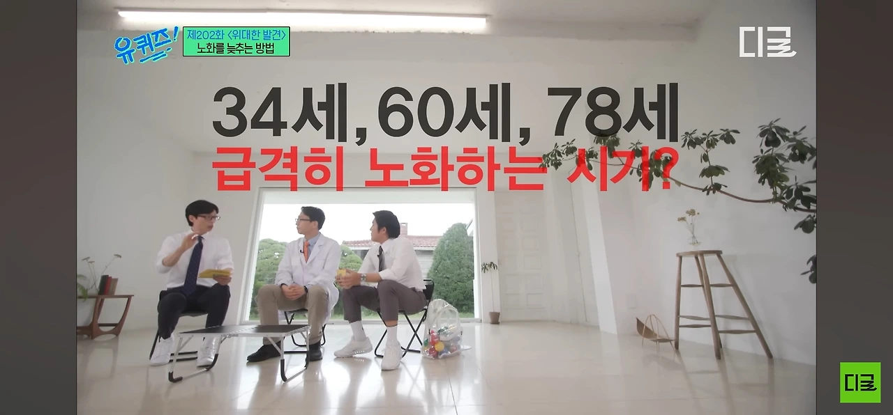 이제 100세 시대인데 여자의 가임기는 왜 멈춰있는가? 하는 의문에 휩싸였을 때 유퀴즈에서 노년내과 선생님이 출연하신 영상을 보게 되었다. 사람이 급진적으로 노화가 되는 나이가 있는데 바로 34세, 60세, 78세라고 하시더라.