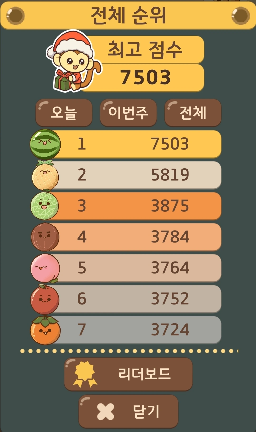 최근 짬짬이 하는 수박게임인데 신랑은 저에게 내기를 해서 본인 최고 점수 4000점을 경신했던 반면 저는 꾸준히 실력을 쌓아 올리다보니 어느순간 7000점 최고점수를 경신했습니다
