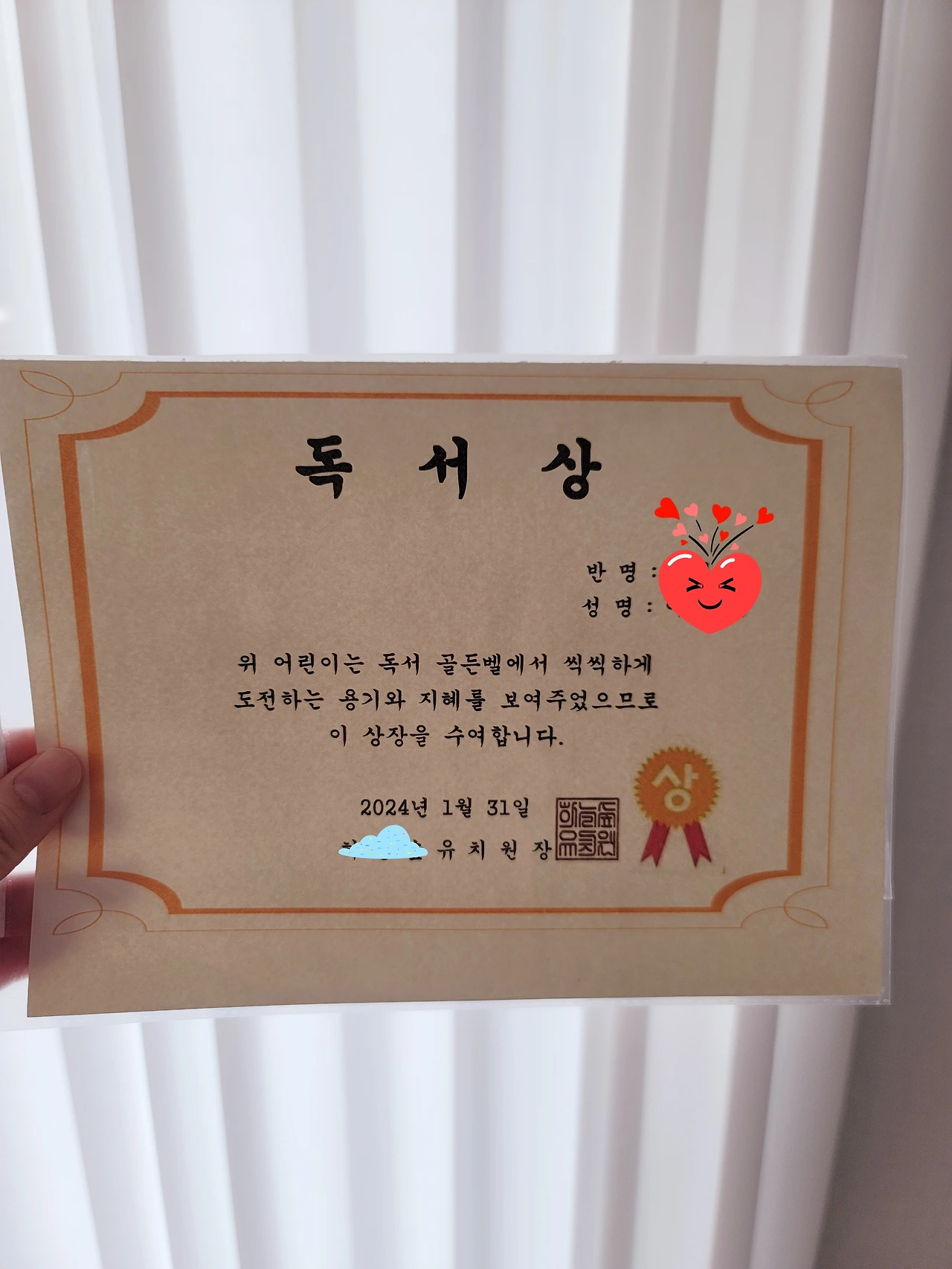 어제는 유치원에서 주기적으로 있는 독서 골든벨의 날이었다. 첫 번째 골든벨은 이사 온 지 얼마 안 된 터라 참가에 의의를 뒀었고, 두 번째 골든벨은 집에서도 책을 여러 차례 읽어간 정도로만 준비했었다.