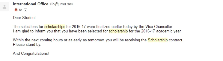 나의 경우 아쉽게도 KTR 장학금라운드에서는 내가 1지망으로 지원한 우메오 대학의 장학금 수혜자로 선발되지 못했다. 하지만 감사히도 우메오 대학 자체에서 선발한 전액 장학생으로 뽑혀 2016년 우메오 대학교 관광학 석사 프로그램에 진학하게 되었다! :)