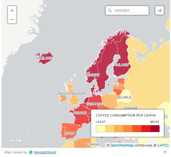 Next to water, there is one more beverage that the average Swede cannot live without; coffee. The Telegraph mapped the world’s biggest coffee drinkers, and Sweden came out as number six, the average Swede going through an impressive 8,2 kg coffee a year. (http://www.telegraph.co.uk/travel/maps-and-graphics/countries-that-drink-the-most-coffee/)