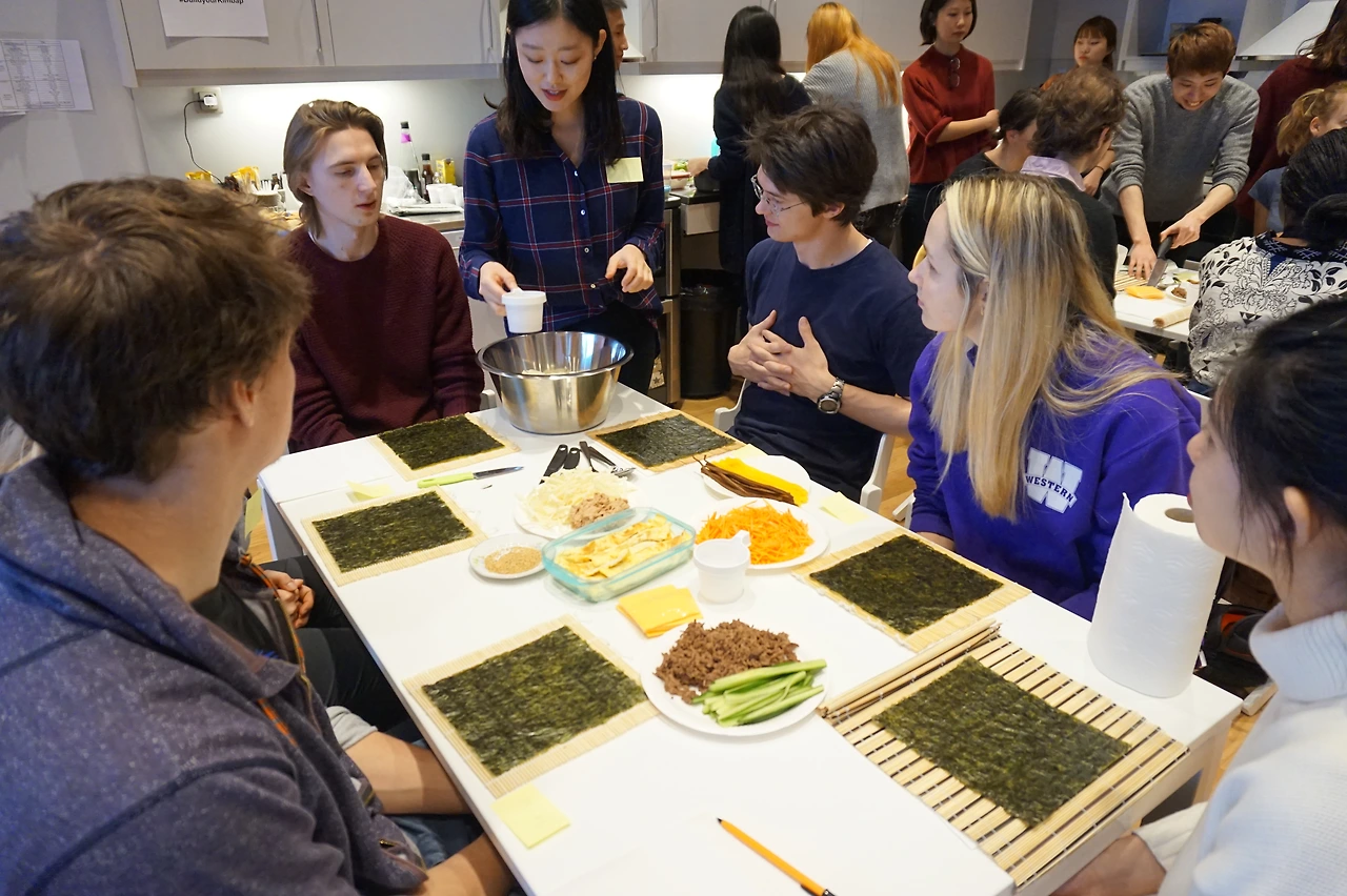 기억의 소중함의 경중을 따지기가 어려운데, 사실 개별적인 추억들은 각자 다른 의미를지니니까요. 그래도 그 중 하나를 꼽는다면 지난 2월 한국유학생들과 함께 개최한 우메오 최초 김밥 워크샵이에요. 한국 문화를 음식을 통해 알리고 싶어 제가 김밥워크샵을 기획하고, 새로운 학기에 우메오로 오는 친구들에게 김, 단무지, 김밥말이 등 이 곳에서 구할 수 없는 재료들을 들고와달라고 이메일을 보냈었죠. 이메일은 학교 국제교류처에 물어봤어요. 안면도 없는 친구들에게 조심스레 제 뜻을 전했고, 대다수의 학생들이 함께 하고자 해서 기획부터, 재료 준비 그리고운영까지 함께했어요. 45명 정도 접수를 받아서 두 세션에 나눠서 김밥 워크샵을 진행했는데, 한국 음식도 소개하고 서로 음식을 만들면서 각자의 문화, 꿈, 여행이야기등 다양한 이야기를 펼칠 수 있는 행사였어요. 준비한 저희뿐만 아니라 참가자들도 만족스러워 해서 더욱 뿌듯했던 것 같아요.