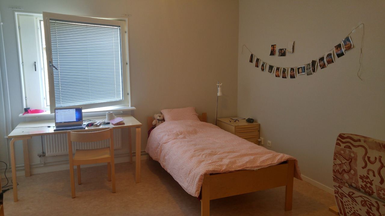 내가 살던 곳은 학생들이 모여사는 동네에 지어진 4층짜리 아파트로, 학생 전용 아파트는 아니지만 80% 이상의 거주자가 우메오 대학 학생이었다. 우리나라로 치면 원룸과 같은 구조의 방(평균 20^m)을 1개 임대하고 매달 월세(35~40만 원 정도, 우메오 기준)를 냈다. 방 안에는 큰 이중 창문과, 침대, 책상, 의자, 책꽂이, 안락의자, 미니 테이블, 개별 욕실이 갖춰져 있었다. 조명, 커튼, 이불 등 나머지 필요한 것들은 많은 학생들이 IKEA나 중고 전문 가게에서 자신의 취향대로 구매한다. 주머니가 가벼운 학생들에겐 저렴하고 단기간 실용적으로 쓸 수 있는 IKEA와 중고 상품은 굉장히 유용하다.