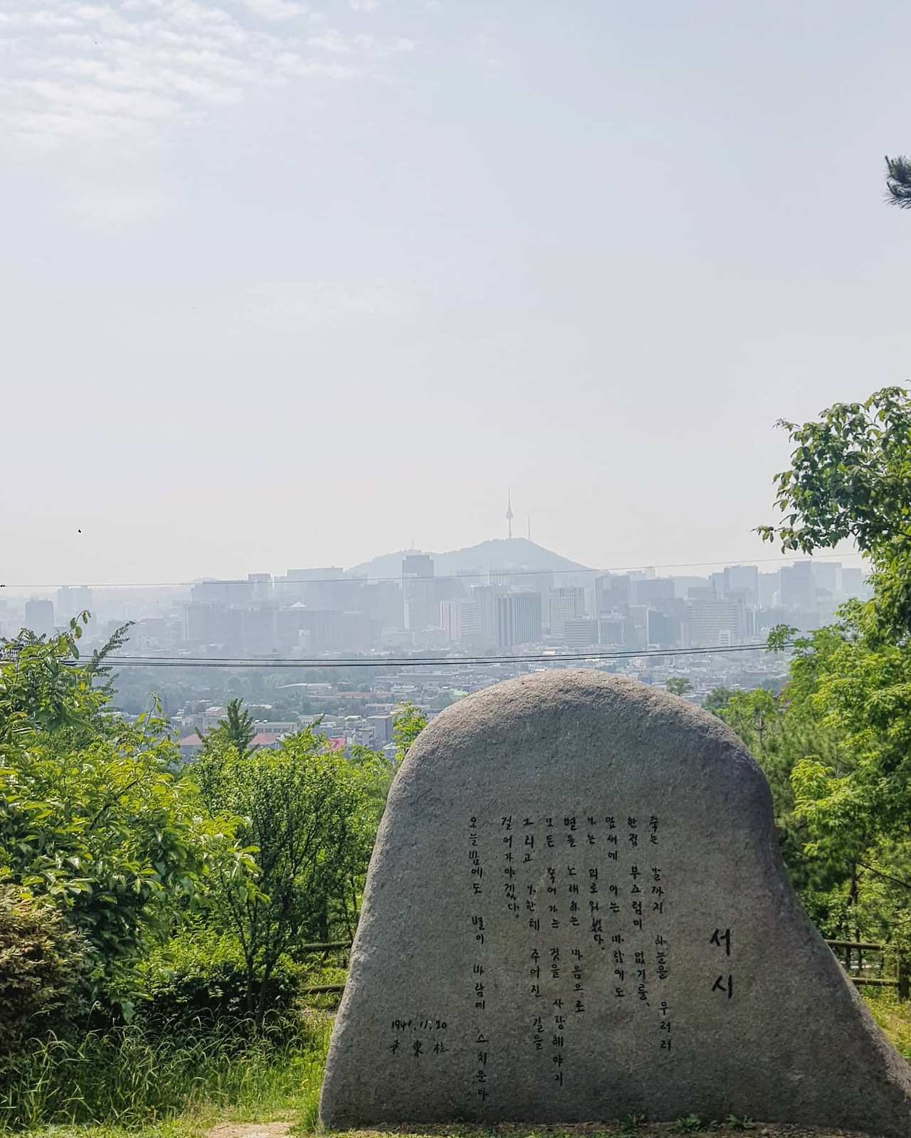 오늘은 혼자 인왕산에 갔다. 매번 애용하던 경복궁역 코스 대신, 새로운 코스로 올라가고 싶었다. 목표한 곳은 기차바위를 지나 정상으로가는 길이었지만, 우연히 발견한 윤동주 시인의 언덕을 지나가기로 했다. 하늘 아래 한 점 부끄럼없이 살다 간, 자기만의 길을 걸어간 윤동주. 그의 소신만큼 굳건히 서있는 돌 위에 새겨진 '서시'는 나는 어떤 사람이 되고 싶은지, 어떤 삶을 살고 싶은지 다시금 자문하게 했다. 남들이 가지 않는 길도 헤쳐갈 수 있는 용기를 지켜낼 용기를잃지 않을 수 있을까.