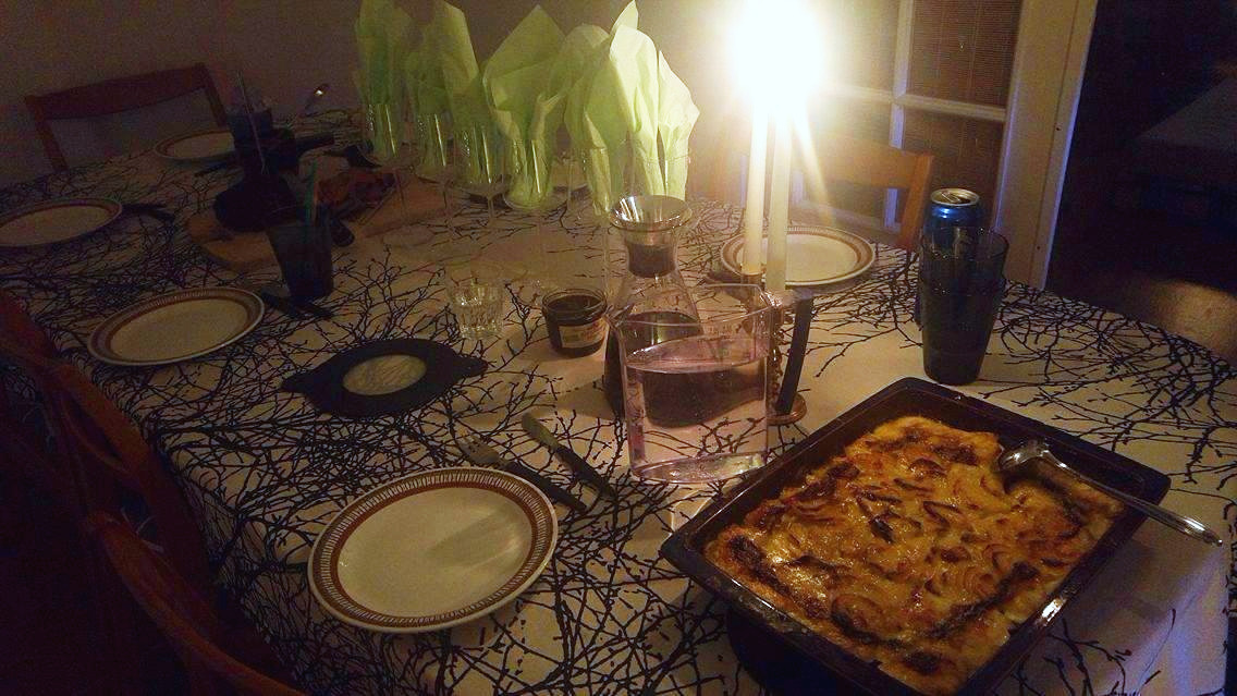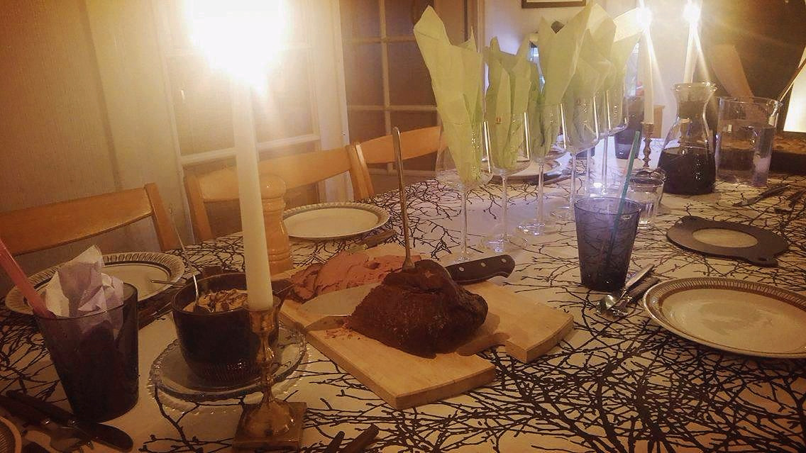 우리는 요리를 준비하면서 샴페인, 간단한 생선 그리고 우리만의 이야기로 애피타이저를 끝낸 후 우리들의 첫 저녁 식사를 준비했다. 안나와 크리스가 음식을 준비하는 동안 나와, 해린이와 그녀의 동생 미린이는 거실의 아늑한 테이블에 접시, 포크, 나이프, 와인 잔 그리고 초를 셋팅했다. 겨울이 길고 어두운 스웨덴에서 초는 사람들의 생활 곳곳에 스며들어있듯이 오늘도 초는 테이블 한가운데에 놓여 우리의 첫 저녁을 축복해주었다.