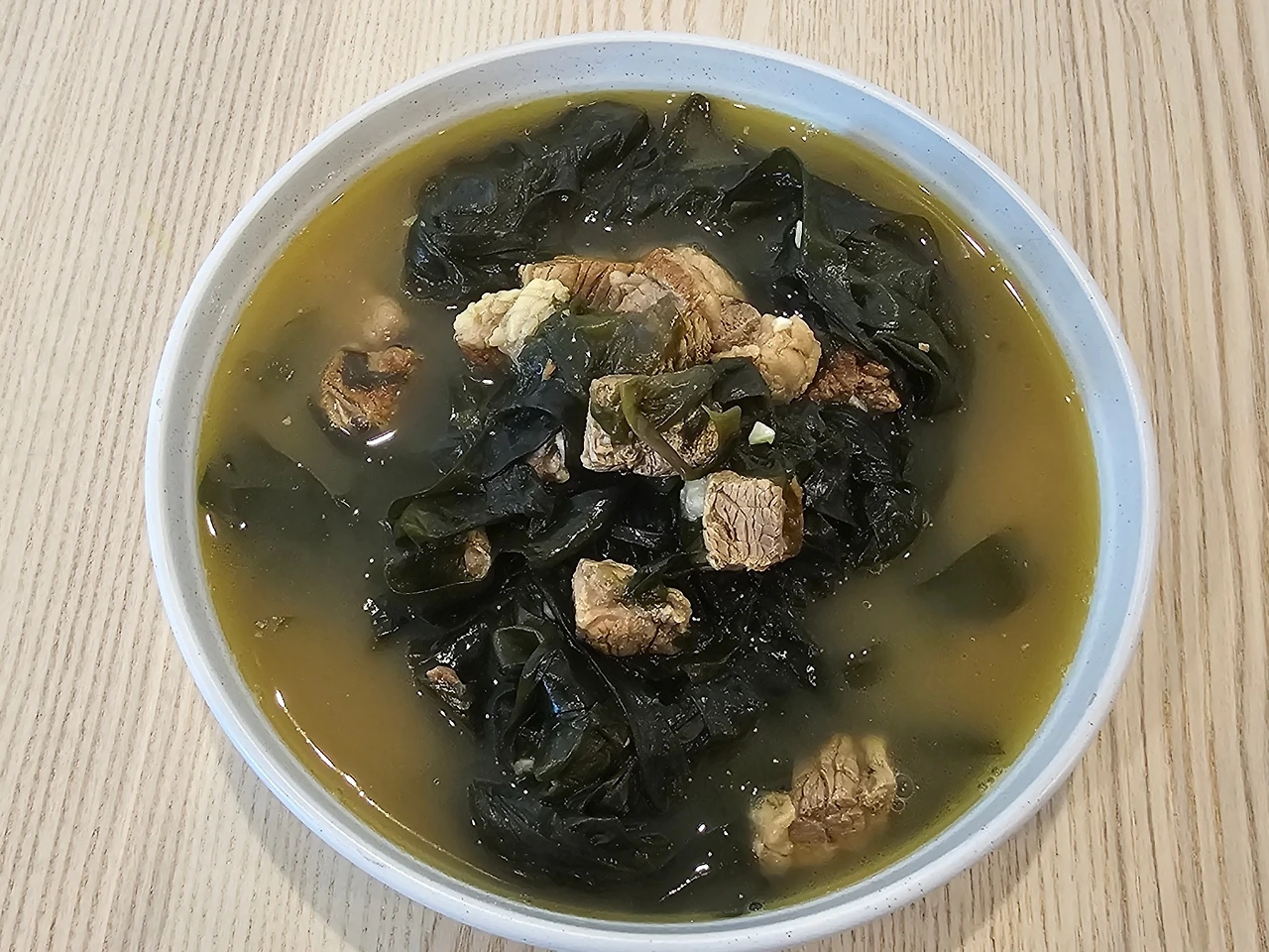 올리브유가 살짝 들어간 미역국! 맛이 어떻든 간에 미역국 한 솥에 담긴 그의 마음만으로 이미 그 미역국은 내 인생의 최고로 맛있고 따뜻한 한 그릇의 선물이 될 것이다.