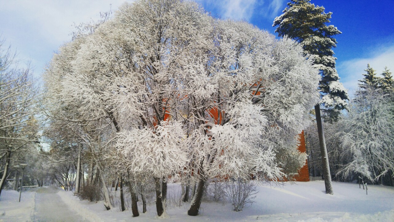 재미있게도 스웨덴 북부는 사실 스웨덴 남부보다도 더 나은 겨울 날씨를 자랑해요(개인마다 겨울의 추위를 정의할 때 더 낮은 기온에 기준을 두느냐, 체감하는 날씨에 기준을 두느냐에 따라 다르겠지만요). 우메오에서 만난 남부 출신의 스웨덴 친구들은 북부의 겨울이 더 낫다고 합니다. 남부는 해가 떠 있는 시간이 북부보다 길지만 상대적으로 높은 기온은 눈보다는 비를 부르고 눈이 오더라도 금세 녹아버려 거리를 질척하게 만들죠. 더군다나 바람이 많이 불고 워낙 습한 날씨 덕분에 기분이 좋지는 않다고 해요. 또 눈이 녹아 없어지기 때문에 북부보다 더욱 어둡다고 하구요. 반면 북부 스웨덴은 바람이 많이 불지 않거니와 눈 덕분에 더욱 포근하게 느껴질 때도 많고, 한 번 내리면 잘 녹지 않아 쌓인 눈은 어둠 속에서 빛의 역할을 해주기 때문에 남부보다 어둠이 빨리 찾아와도 더 밝게 느껴진답니다. 더욱이 눈 오는 날엔 모두가 신나요! 동화 같은 모습에 넋을 놓기도 하고, 옷에 내려앉은 눈의 결정을 관찰하느라 정신없기도 해요(크리스탈이 보입니다..!)