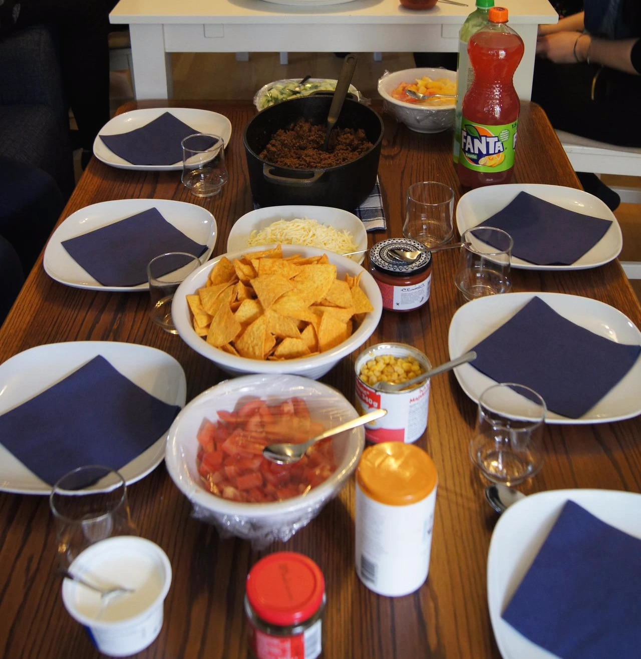 '금요일-타코'라는 문화적 공식 외에도 만들기 쉽고 맛있는 데다, 재료 준비도 쉽고 다양한 식성을 가진 사람들의 입맛을 모두 충족시켜줄 수 있기 때문에 타코의 인기가 높아요. 스웨덴에서 타코를 먹을 때는 양파, 오이, 콘 옥수수, 아보카도(과카몰리), 토마토, 치즈, 소고기, 베지테리안 고기, 파프리카, 살사 소스, 사워크림, 또띠아, 타코쉘, 또띠아 칩스 등을 재료별로 준비해놓고 각자의 앞접시에 원하는 재료만 담아 '나만의 타코'를 만들어 먹어요. 채식주의자와 특정 식품에 알레르기 있는 친구들을 배려하는 문화가 익숙한 이 곳에서 타코는 제격의 메뉴죠!베지테리안은 소고기 대신 콩고기를 선택할 수 있고, 특정 야채를 원치 않거나 못 먹는 사람은 그것을 빼고 먹으면 되니까요. 또한 재료 준비도 대부분 신선한 야채를 잘게 썰면 되기에 크게 손이 가지 않아요. 특히나, 친구들과 함께 타코를 먹을 때는 지출을 1/n 하기보다 '난 토마토, 치즈 사갈게', '그럼 난 오이랑 양파' 등 재료 구매를 분배하기도 쉽죠! 저도 이 곳에서 타코의 매력에 빠져버렸답니다!