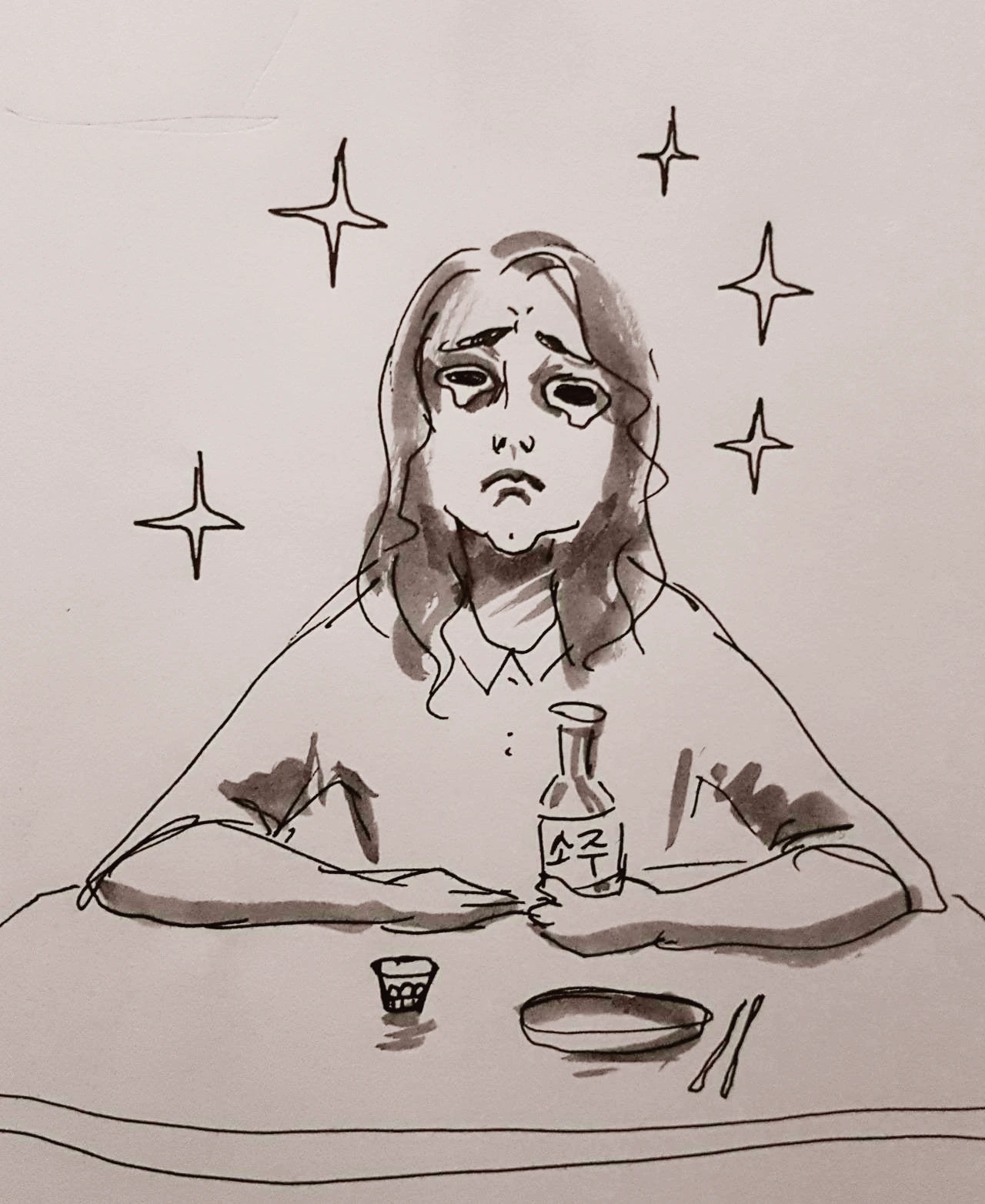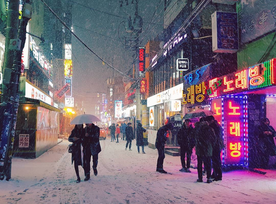 미지의 나라 한국에 대한 나의 기대와 지식은 대부분 스웨덴에서 본 한국 드라마나 한국에서 살던 외국인들이 찍은 유투브 비디오에서 왔어.. 유투브와 드라마가 나의 지식창고였지! 휘황찬란한 네온사인, 많은 사람들, 음악과 소음으로 가득한 거리, 내가 공부하던 우메오랑은 완전 반대였지.. 정말 재밌어 보였어!! 한국 사람들에게 스웨덴은 굉장히 평화롭고 조용한 곳이지만, 나에게는 너무나 지루한 곳이었거든. 한국에 가기 전 한국 드라마를 보며 나도 드라마 여주인공럼 편의점 앞에서나 포장마차(티니카는 Plastic tent라고 했는데, 한동안 도희는 알아듣지 못했다)에서 소주 들이켜는 생활 상상하기도 했지.