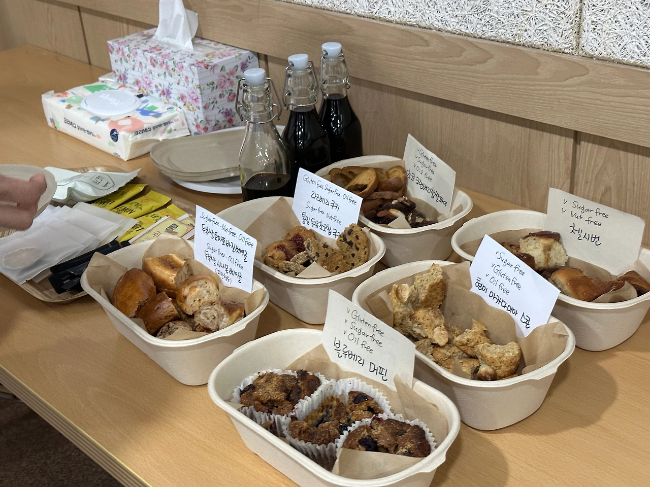 설명회장에 도착하니 내가 만든 빵들을 접시에 담는 사람들이 보인다. 앉아서 프레젠테이션을 듣나 싶었는데 종이를 나눠주며 써달라고 하신다.
