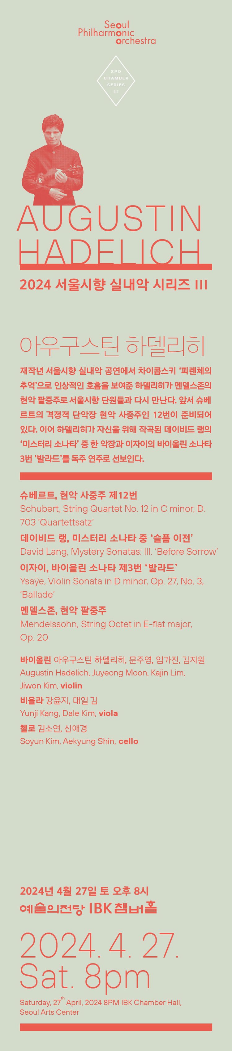 * 2024 서울시향 실내악시리즈 III : 4/27(토) 오후 8시 예술의 전당 IBK챔버홀