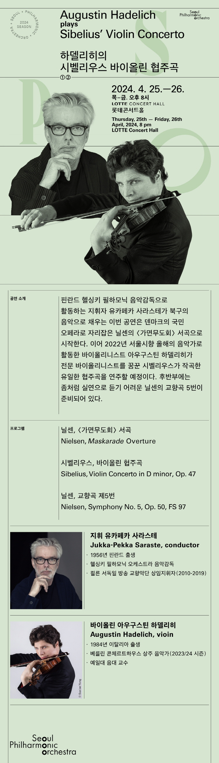 * 하델리히의 시벨리우스 바이올린 협주곡 : 4/25-26(목, 금) 오후 8시 롯데콘서트홀