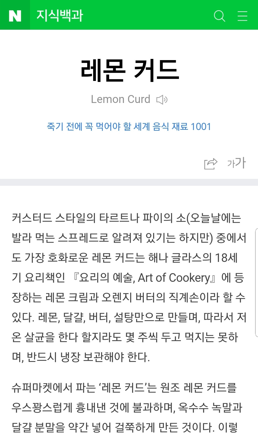 '죽기 전에 꼭 먹어야 할', '요리의 예술'이라는 표현에 구미가 당겼다. 빵에 곁들이면 맛있겠는데?