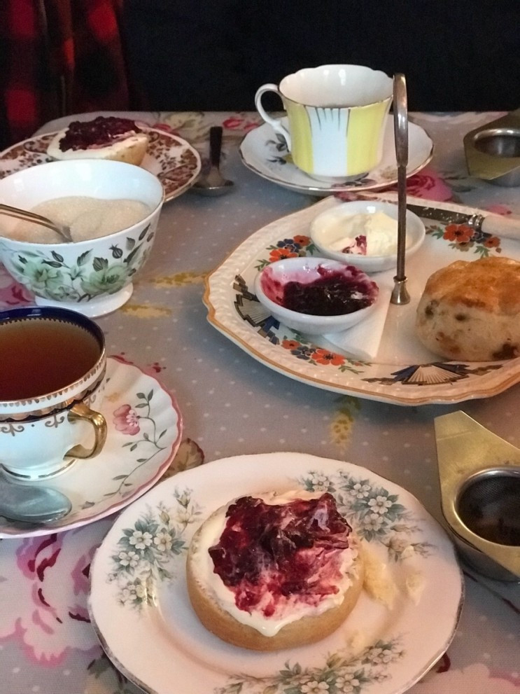 * 크림티(cream tea) : 홍차와 스콘에 클로티드 크림, 과일잼을 곁들여 즐기는 영국의 차 문화로 가벼운 식사도 된다. 여러 층으로 쌓이는 화려한 애프터눈티(afternoon tea)에 비해 단출하고 소박한 형태.