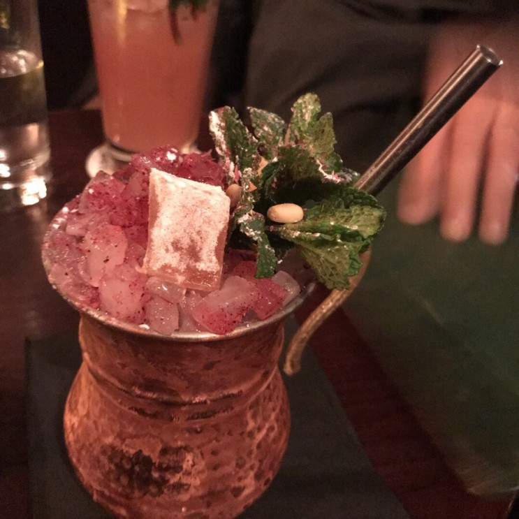 빨간 고추와 초록빛 라임을 넣은 과카몰레는 살짝 풍기는 매콤한 향이 부드럽고 새금한 맛과 잘 어울렸다. 구운 고구마와 찢은 대파를 곁들인 페이크 치킨은 바삭한 튀김옷에서 은은한 강황과 코코넛 향이 났다. 살구빛이 도는 수제 마요네즈도 난생처음 먹는 맛이었다. '퍼지 볼'은 첫맛이 무척 생소했지만 음미할수록 희한하게 적응되었고, ‘더래빗 the rabbit’(직원이 내 발음을 영국식으로 수정해주었다)이라는 칵테일과 먹으면 먹을수록 묘한 조화를 이뤘다. 저마다의 존재감을 드러내듯 씹히는 재료들의 식감과 생생한 향은 가게를 나온 후에도 깊은 여운을 남겼다. 처음 맛본 놀라운 무언가를 감지한 혀와 코, 눈과 귀가 뇌에 지속적인 흥분의 신호를 보냈기 때문이다.