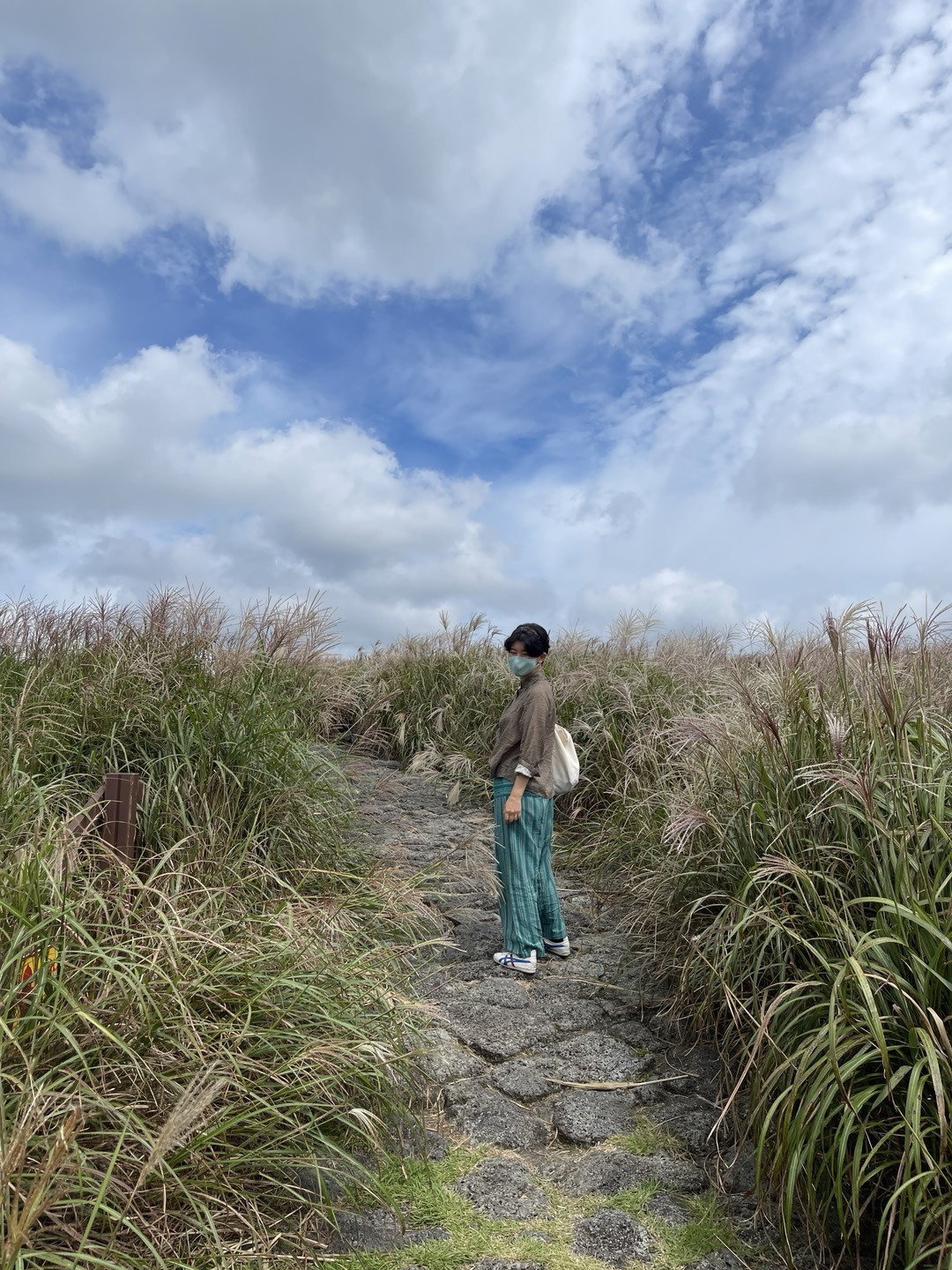 흐린 날씨였지만 우리에겐 첫 방문이니, 억새들 틈에서 사진을 찍고 놀다가 놀멍 놀멍('천천히'의 제주도 사투리) 걸어 내려왔다.