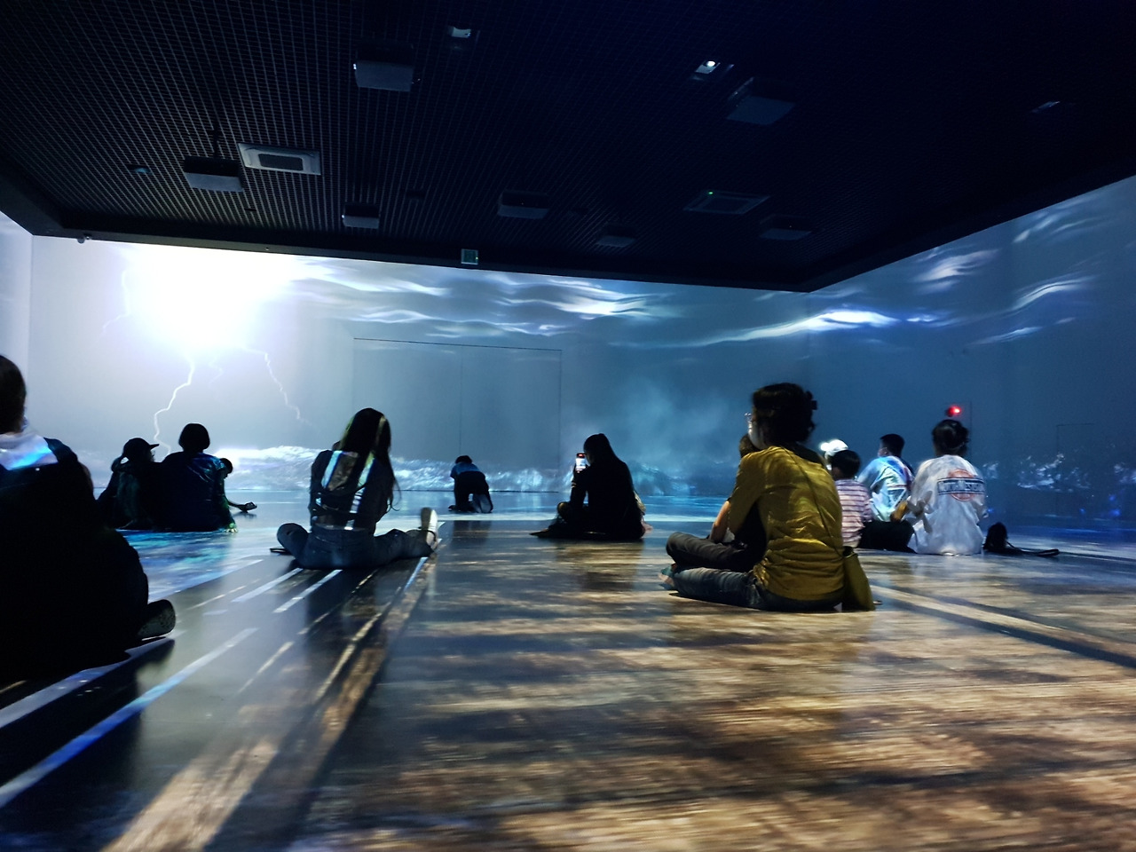 넓은 실내의 바닥이 방이라도 되는 듯 앉아있는 사람들. 바닥과 옆면이 하나로 이어져 움직이는 듯한 그래픽에 빨려 들어갈 듯 실감 나는 광경이 연출되고 있었다. 오랜만에 감상하는 미디어 아트라니, 생각지도 못한 행운이다. 2편을 연이어 상영한다는 안내 방송에 한 편 더 보자고 남편을 졸랐지만, 어지러운지 나가자고 해서 툴툴대며 밖으로 따라나섰다. 전시관을 사방으로 둘러싼 야외 정원과 산책로에서 이름 모를 커다란 새를 발견해 쫓아갔는데, 새는 우리와 거리가 가까워지면 푸드덕! 날아올라 처음만큼의 간격을 다시 만들어냈다. 연못 한 바퀴를 다 돌 때까지, 좁혀지지 않는 너란 새와의 거리... 새들은 어쩜 이리 눈치가 빠를까?