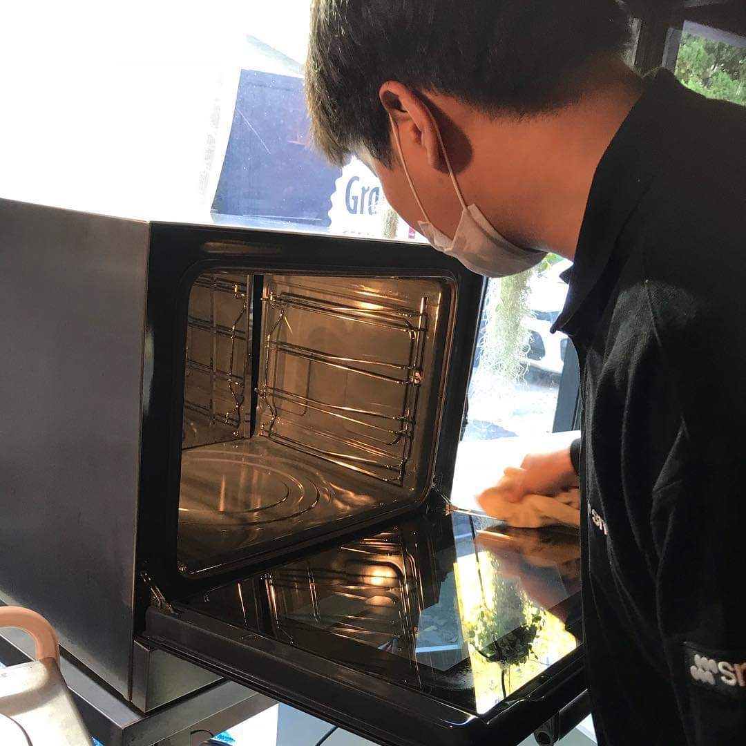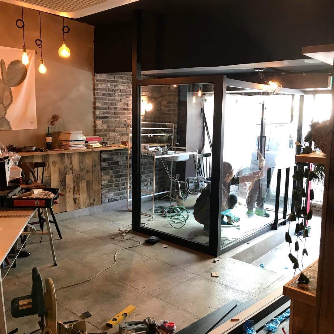주방이 협소해서 매장 앞쪽에 베이킹 부스를 따로 만들고 수도를 끌어왔다. 기존에 작업을 하던 베이킹 스튜디오도 빠르게 정리해나갔다. 대신 새로 만든 유리 부스에 Baking Studio라는 스티커를 붙이자, 필요한 것들이 손만 뻗으면 닿는 미니 작업실이 탄생했다.