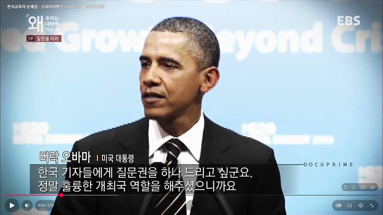 당시 버락 오바마 대통령은 G20 정상회의를 한국에서 개최한 것에 고마움을 표시하며, 한국 기자들에게 질문권을 주었다.