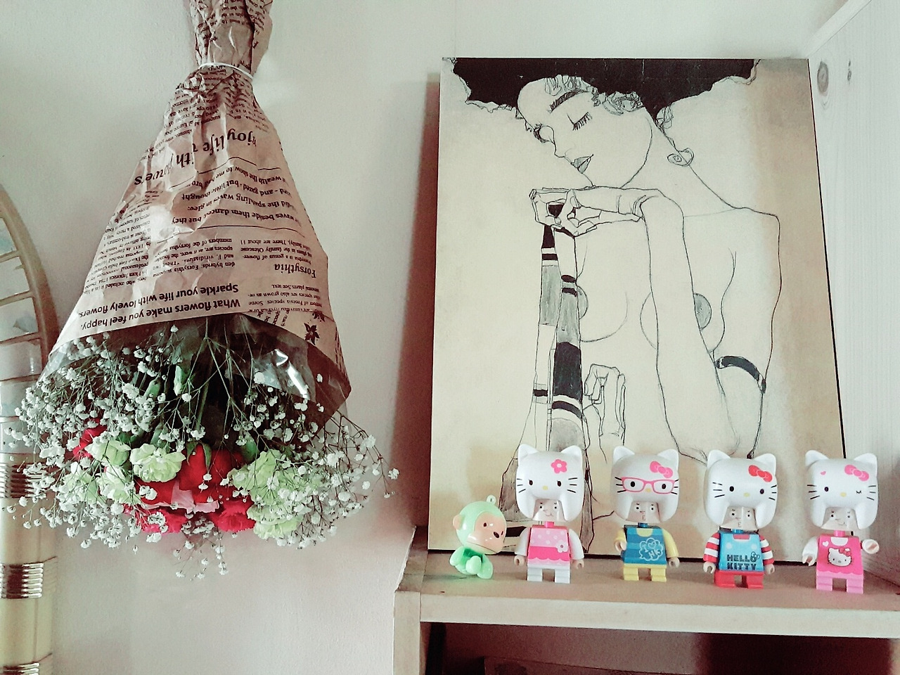 나는 얼떨결에 꽃다발을 받아들고