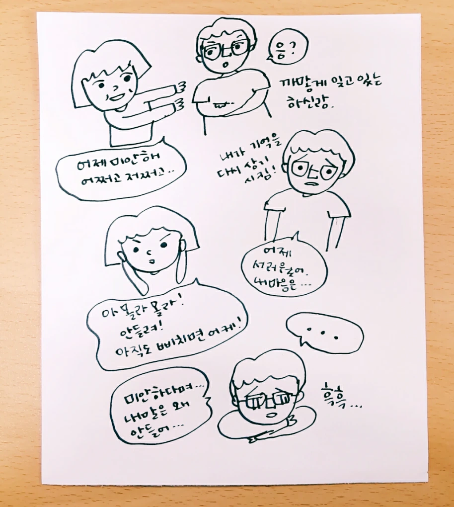 내가 미안하단 말도 안하고 자버렸으니