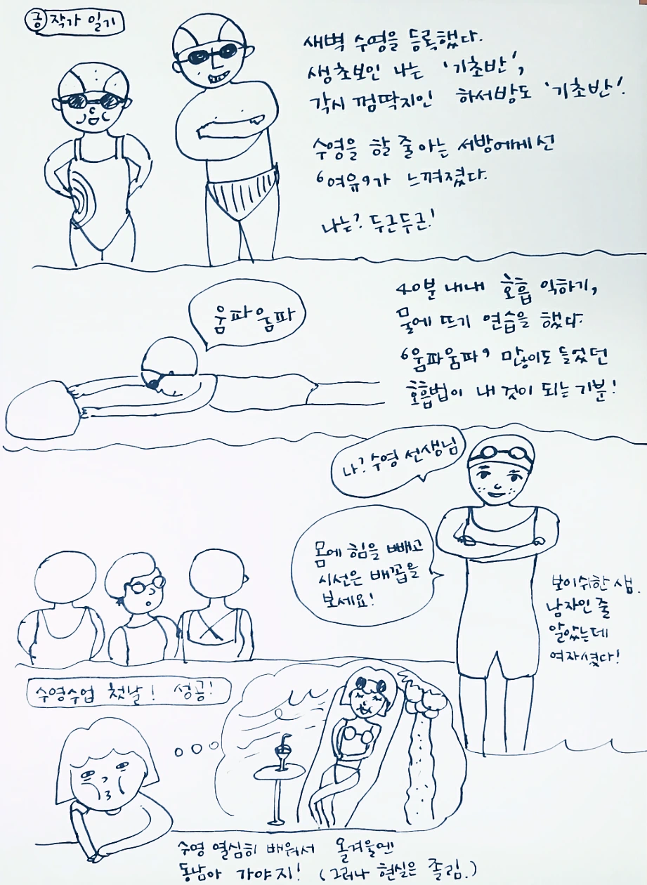 과연 내가 수영을 잘할 수 있을까? 상상이 잘 되지 않는다. 수영을 배우면 동남아에 가서 수영하고 먹고 수영하고 먹고 자고 그런 휴가를 보내고 싶다.