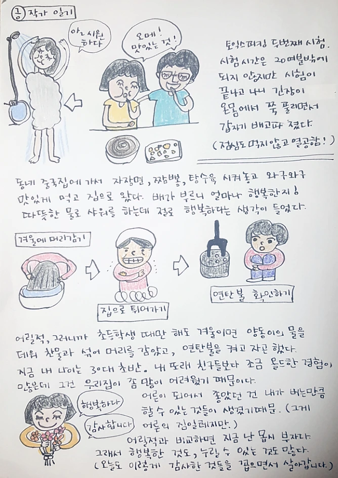 어찌나 힘들었는지 그땐 따뜻한 물을