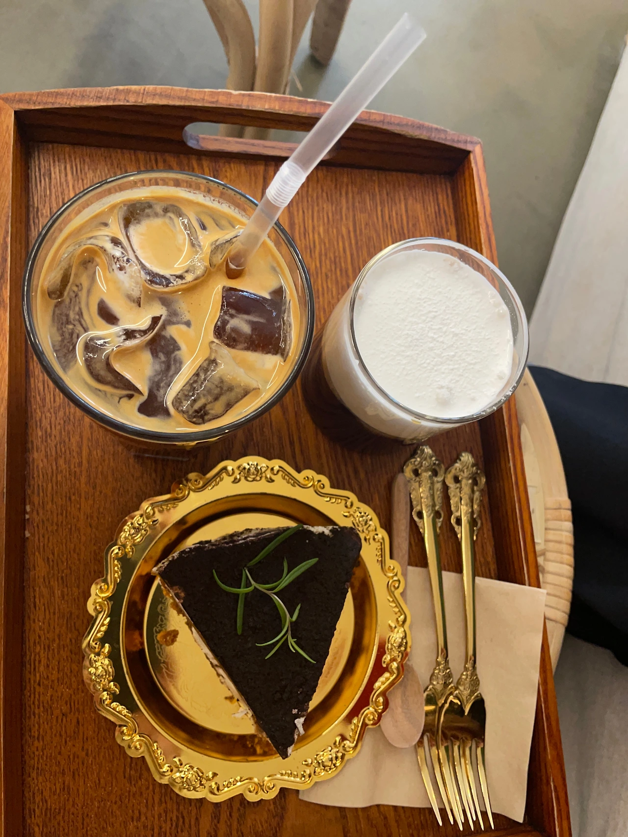 [광주 북구 일곡동의 카페 ‘심히 좋았더라’의 커피와 케익. 광주에는 서울만큼 맛있는 카페가 매우 드물기 때문에, 동 3개 당 하나 꼴로 맛있는 카페가 있을 정도이다. 당연히 희귀하기 때문에 비싸다. 누가 광주의 물가가 싸다고 했는가? 음식의 질 대비 가격은 서울이 훨씬 싸다.]