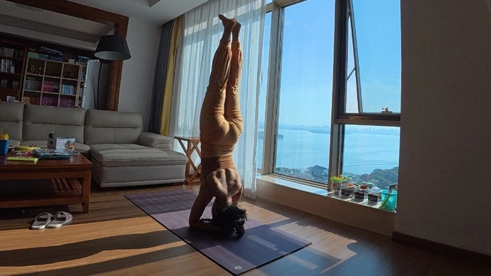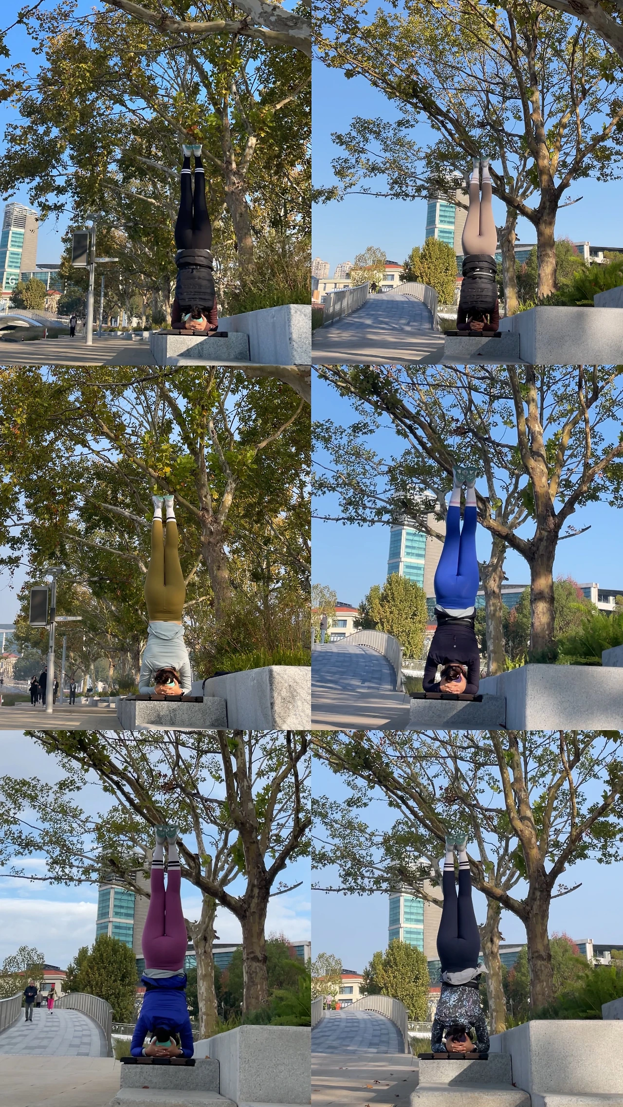 이제는 평평한 곳 어디에서든 머리로 서서 가볍게 올라갈 수 있다.