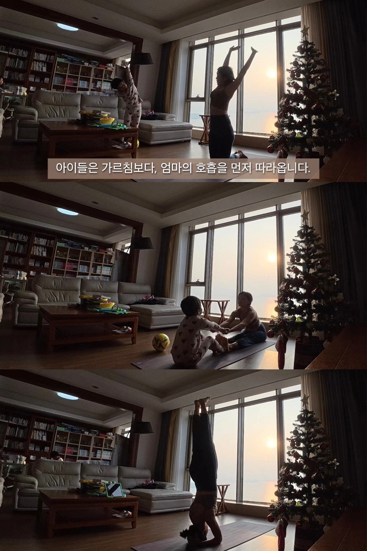 요가를 하며 아이들에게 무언가를 보여주려 한 적은 없어요.