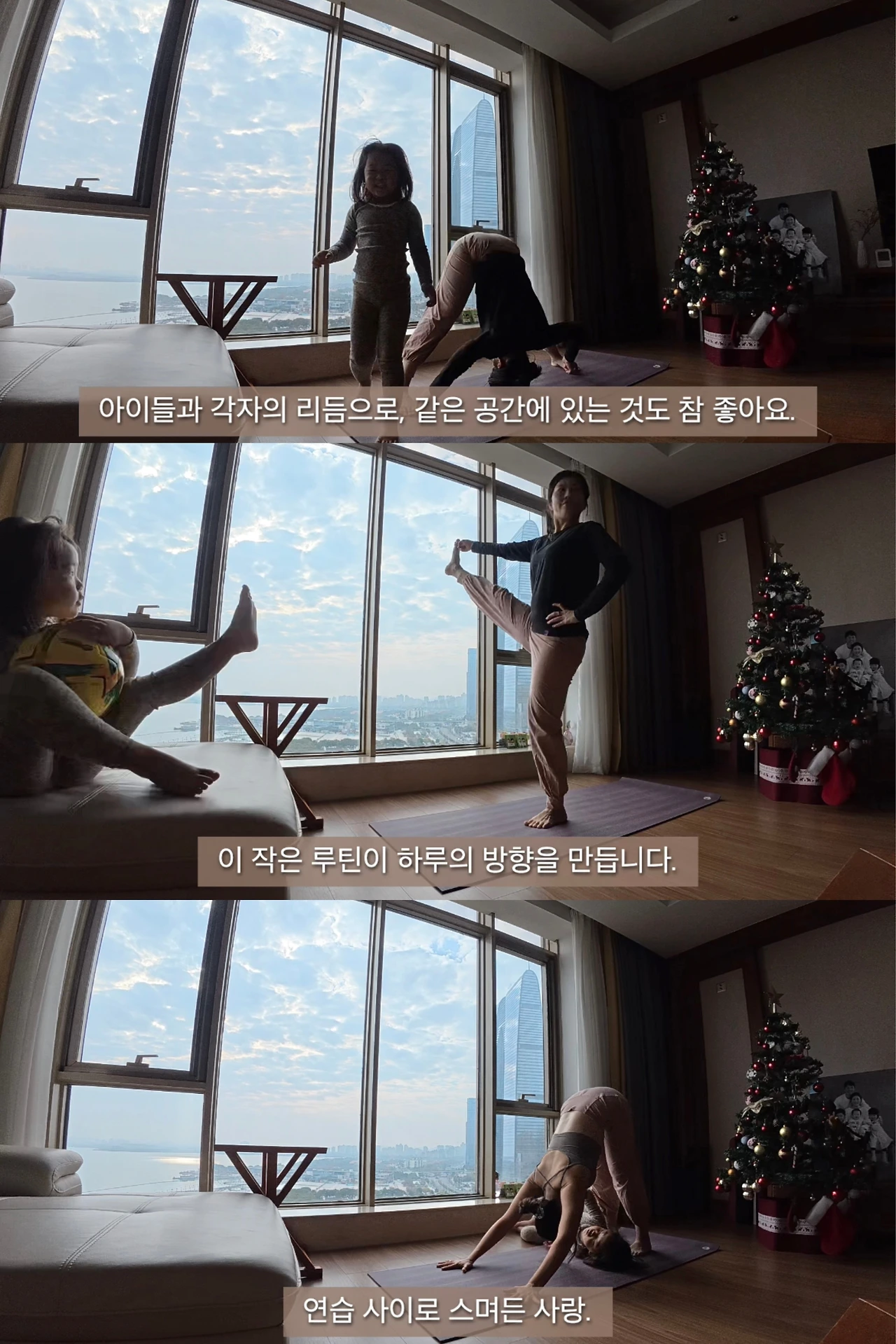 요가를 하면서도 저는 아이들을 봐요.