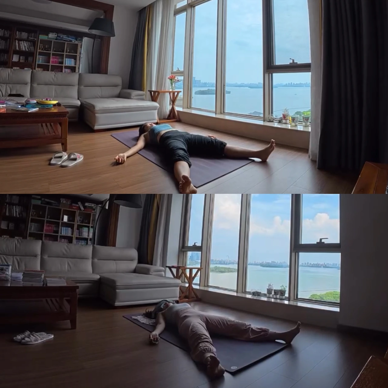 요가매트를 펴고 움직이다가 마지막에 사바아사나에 누우면