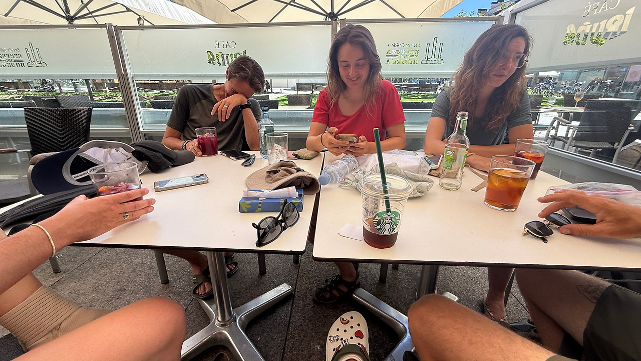 어제 번호를 교환한 아델에게 팜플로나 잘 도착했는지 물었더니 금세 프랑스 친구들과 ‘카페 이루냐’에 있다고 오겠냐고 했다. 방금 지나온 곳이었다. “와이낫! 윌비데어” 했다. 갔더니 어제 봤던 맥스와 캐롤라인, 아델이 있었고 처음 보는 아흐완과 여자애 한 명이 더 있었다(이름을 들었는데 그새 또 까먹었다 편의상 A로 적겠다). 다들 샹그리아나 커피를 하나씩 시켜 마셨다. 모두 프랑스인이어서 자기들끼리 프렌치로 말하다가 내게 말을 걸 땐 영어로 하는 식이었다. 캐롤라인과 A는 팜플로나에서 연박을 할 예정인데 내일은 산세바스찬에 간다고 했다. 캐롤라인은 거기서 해안을 따라 걸을 예정이고, A는 서핑을 하고 올 거란다. 아흐완은 레온까지는 프랑스길을 따라 걷다가 거기서부턴 북쪽길과 프랑스길 사이에 있는 또 다른 루트를 따라 걸을 예정이라고 했다. 왜? 했더니 “그냥 거기가 좋다고들 추천하더라고!” 했다. 산티아고데콤포스텔라에 도착하고 나면 히키하이킹을 해서 집으로 돌아갈까 한단다. 3개월이 걸려 간 곳에서 비행기를 타고 몇 시간 만에 돌아오는 건 너무 허무하지 않냐고. 나는 “완전 유러피안 식이네”하는 말로 부러움을 대신 전했다. 맥스에게 내일 어디까지 가냐고 묻자 주변에서 농담조로 “바르셀로나!” 하기에 나도 당연 농담인 줄 알았는데 맥스는 정말로 바르셀로나에 갈까 고민 중이라고 했다. “기차가 35유로밖에 안 하던데!”하며 “내일 아침에 정하려고”했다. 바르셀로나에 갔다가 다시 돌아와 걸을 거냐고 묻자 ”그럴 수도 있고, 그만 걸을 수도 있고, 산티아고까지 가고 싶긴 한데 여름에 다시 와서 걸을 수도 있고“라며 어깨를 으쓱. 어제오늘처럼 앞으로도 앞서거니 뒤서거니 하며 함께 산티아고 순례길까지 가는 줄 알았는데 내심 아쉬웠지만 맥스는 ”This is freedom!”이라고 너스레를 떨었다.