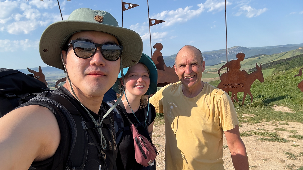 팜플로나에서 빠져나오는 중에 길만 세 번 잃었다. 오해하지 마시라, 당연히 어플로 지도 보면서 다닌다. 길치는 원래 본인의 감 따위는 믿지 않고 폰을 보고 따라가는데, 진짜 찐 길치는 그 마저도 파란 점이 경로를 벗어나고 나서야 깨닫는다. 6시경 출발했다. 일출 전 출발은 처음이었지만 팜플로나는 대도시라 거리마다 가로등이 있어 헤드랜턴은 사용할 일 없었다. 10분쯤 가자 익숙한 뒷모습이 보였다. 케이틀린이었다. 옆에는 처음 보는 분이었는데 뉴질랜드에서 온 크리스라고 했다. 정말 인상 좋고 목소리 부드러운 할아버지였다. 정말 특이했던 건 서울-부산 자전거 국토종주를 하셨다는 거였다. 크리스는 12년 전에, 나는 5년 전에 했으니 7년의 갭을 두고 같은 길을 달렸었고 지금은 같은 날 같은 곳을 걷고 있다.