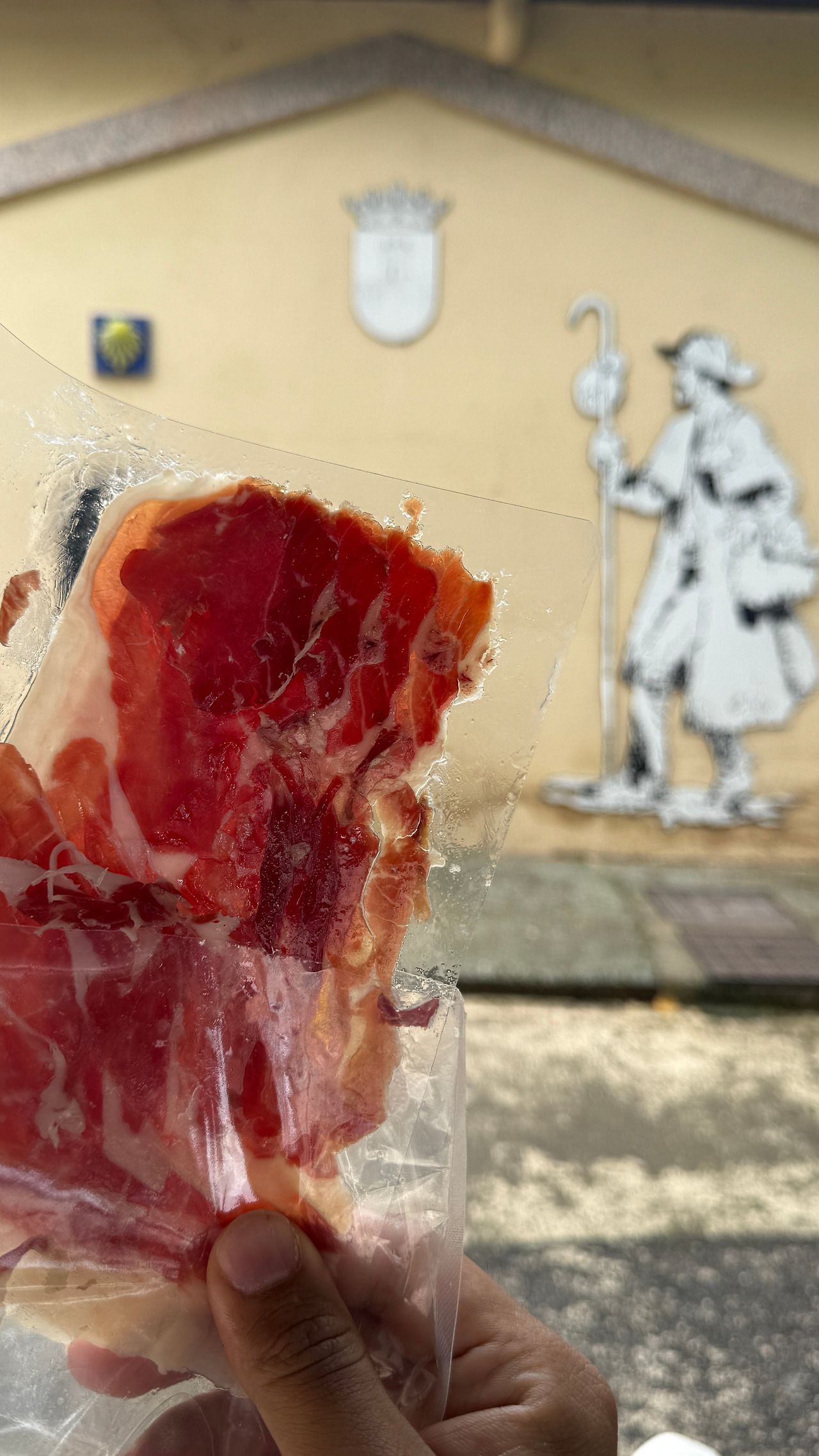 아무래도 공립 알베르게보다는 사립의 시설이 좋은 경우가 많아서 나는 오늘도 사립에 묵고자 오는 길에 몇 군데 연락을 해봤었는데 모두 예약 완료라고 했다. 한 곳은 “한국인 단체가 전부 예약을 해버려서 침대가 없어”라고 했는데, 같은 한국인인 나도 짜증이 나는데 외국인 순례자가 이런 얘길 들으면 한국인에 대해 뭐라고 생각할까 싶었다. 아닌 게 아니라 전세 버스가 가방을 실어 나르며 단체로 순례를 하는 사람들을 한국인 외에는 아직 못 봤다. 순례자들 사이에서 눈에 띌 뿐만 아니라 눈엣가시가 되지 않을 수가 없는 이유다. 나는 워크인 순례자를 위해 남겨놓는 침대가 있다는 곳으로 일단 가봤는데 “메세지를 보냈던 직원이 실수를 했나 보다”며 남은 침대가 하나도 없다고 했다. 어쩔 수 없이 공립 알베르게로 향했고 체크인 시간까지는 한 시간 반여가 남아서 나는 그 앞에 앉아 싸왔던 초코렛과 하몽을 먹었다.