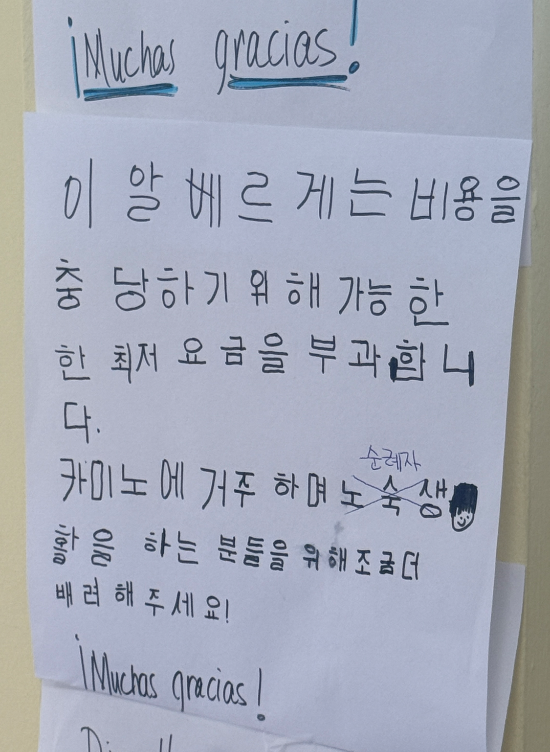 우르르 체크인을 하고 알아서 각자의 침대를 고르는 방식이었다. 나는 일찍 들어간 편에 속해 남는 침대가 아주 많았는데, 편한 1층을 고를지 연장자와 부상자들을 위해 2층을 택할지 망설였다. 가방과의 접근성으로 보나, 눕고 일어나는 편의성으로 보나, 굴러 떨어질 위험성으로 보나 어느 순례자에게나 1층 침대가 더 매력적인 건 사실이다. 고민이 길어지며 가방을 놓지 못하고 이리저리 배회하자 알베르게의 봉사자가 들어와 웃으며 “젊은 사람들은 2층으로 가줘” 했다. “오브콜스, 노 프라블럼” 하며 2층에 짐을 풀었다. 스스로 주저 없이 2층을 선택하지 못한 게 부끄러웠다. 함께 들어와 1층에 짐을 풀었던 안토니와 호진 씨는 머쓱하게 침대를 옮겼다.